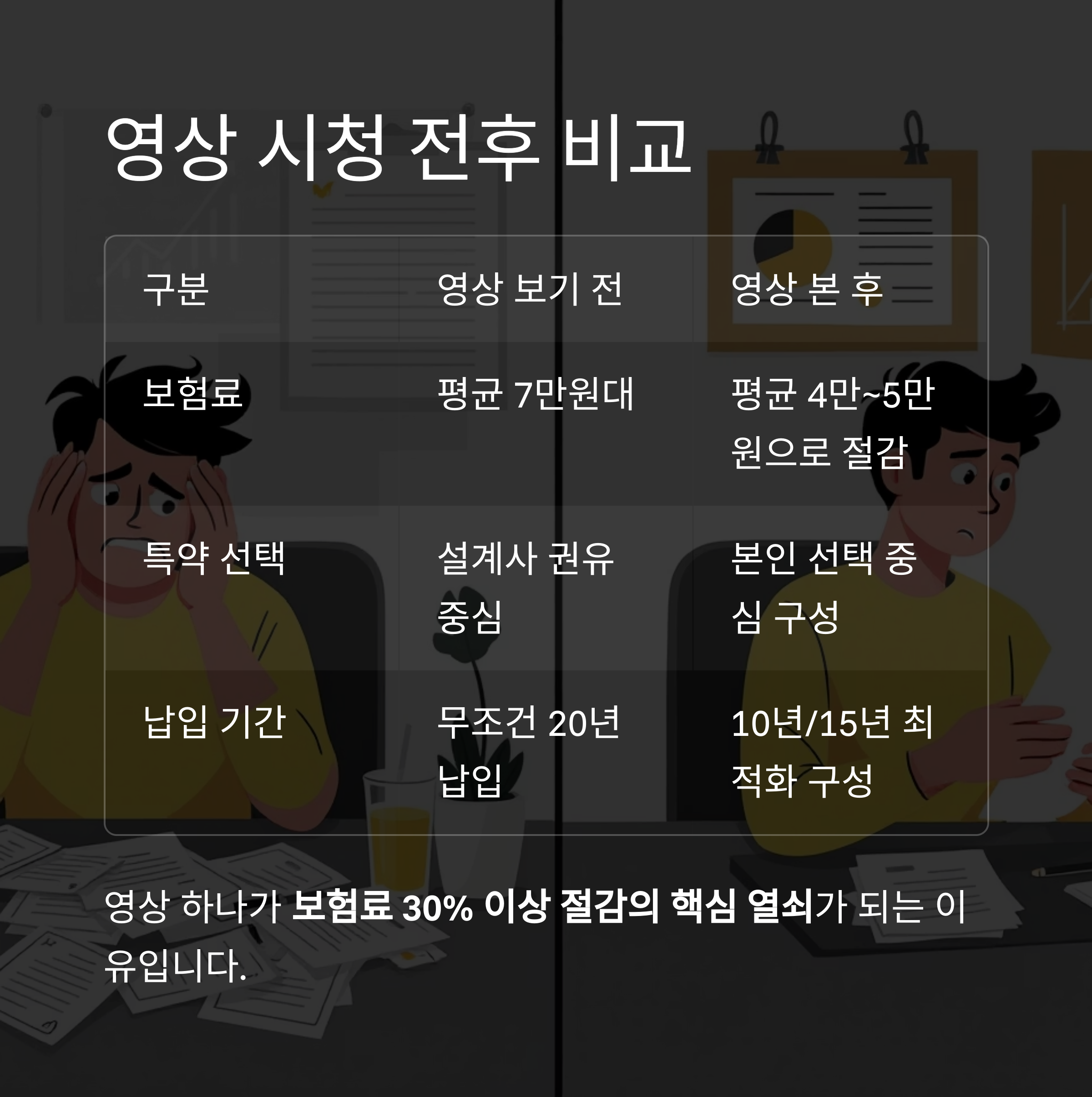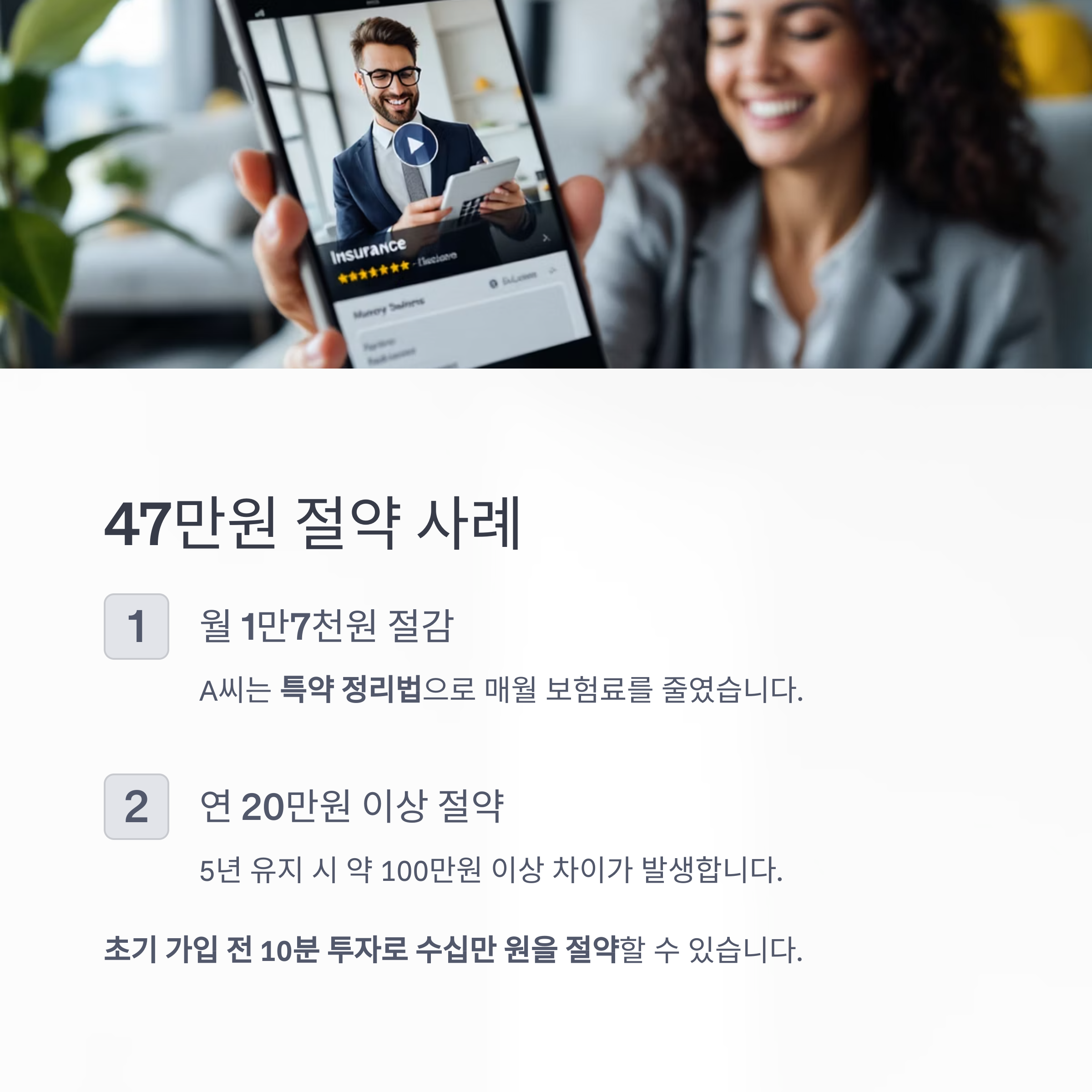 | 보험료 | 평균 7만원대 | 평균 4만~5만원으로 절감 |