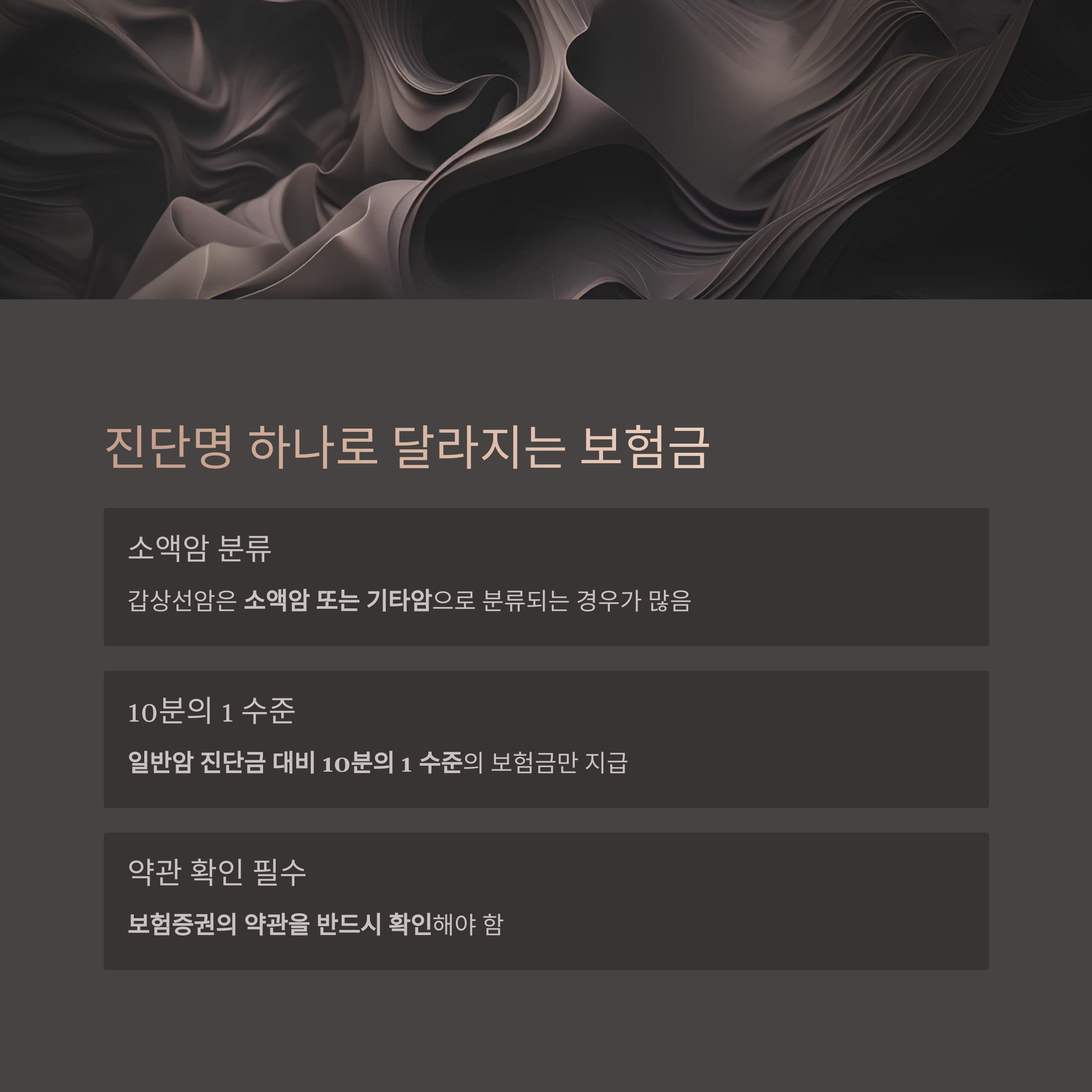 갑상선암은 일반암이 아닌 소액암 또는 기타암으로 분류되는 경우가 많습니다.