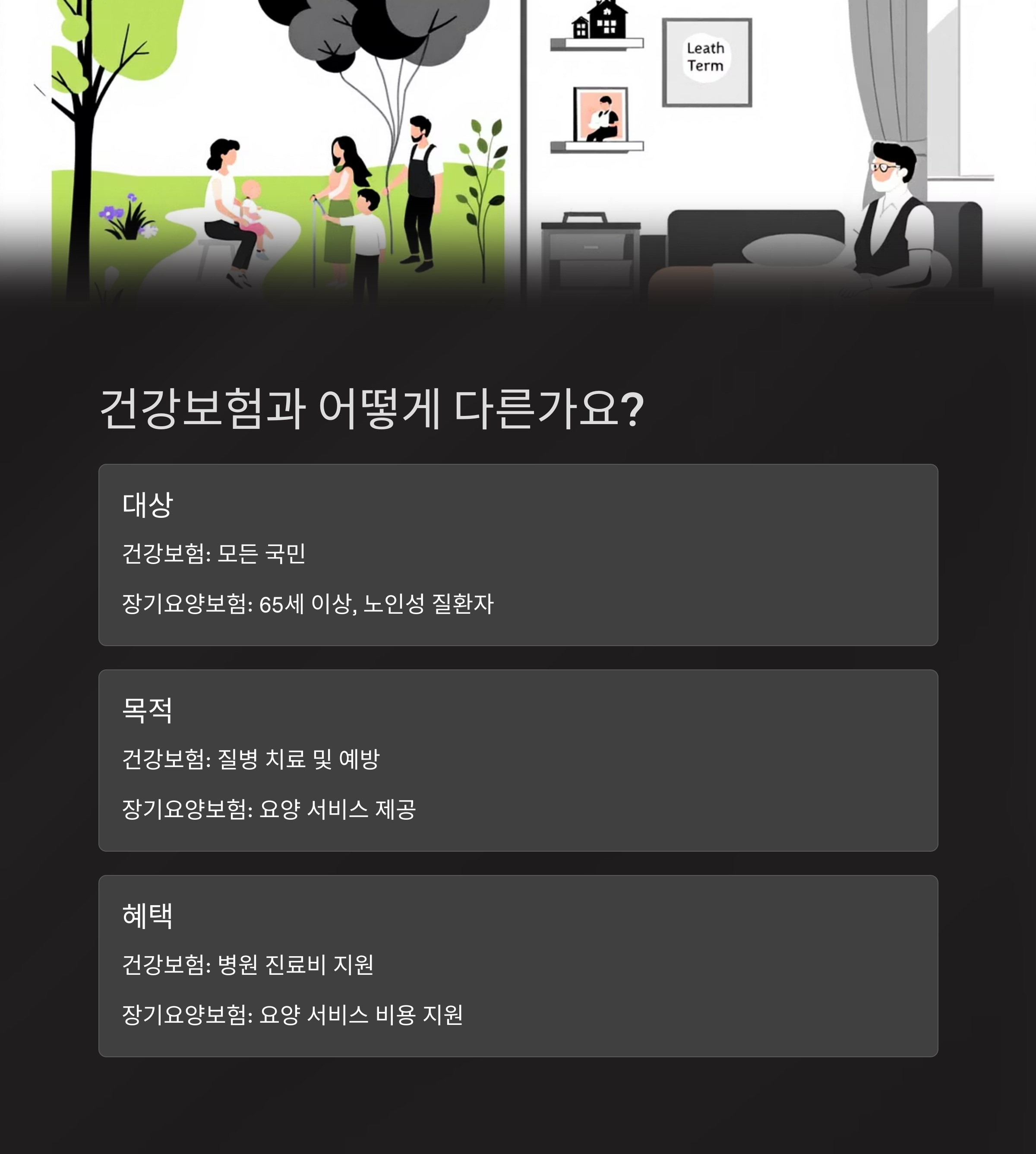 장기요양보험과 건강보험은 비슷해 보이지만,