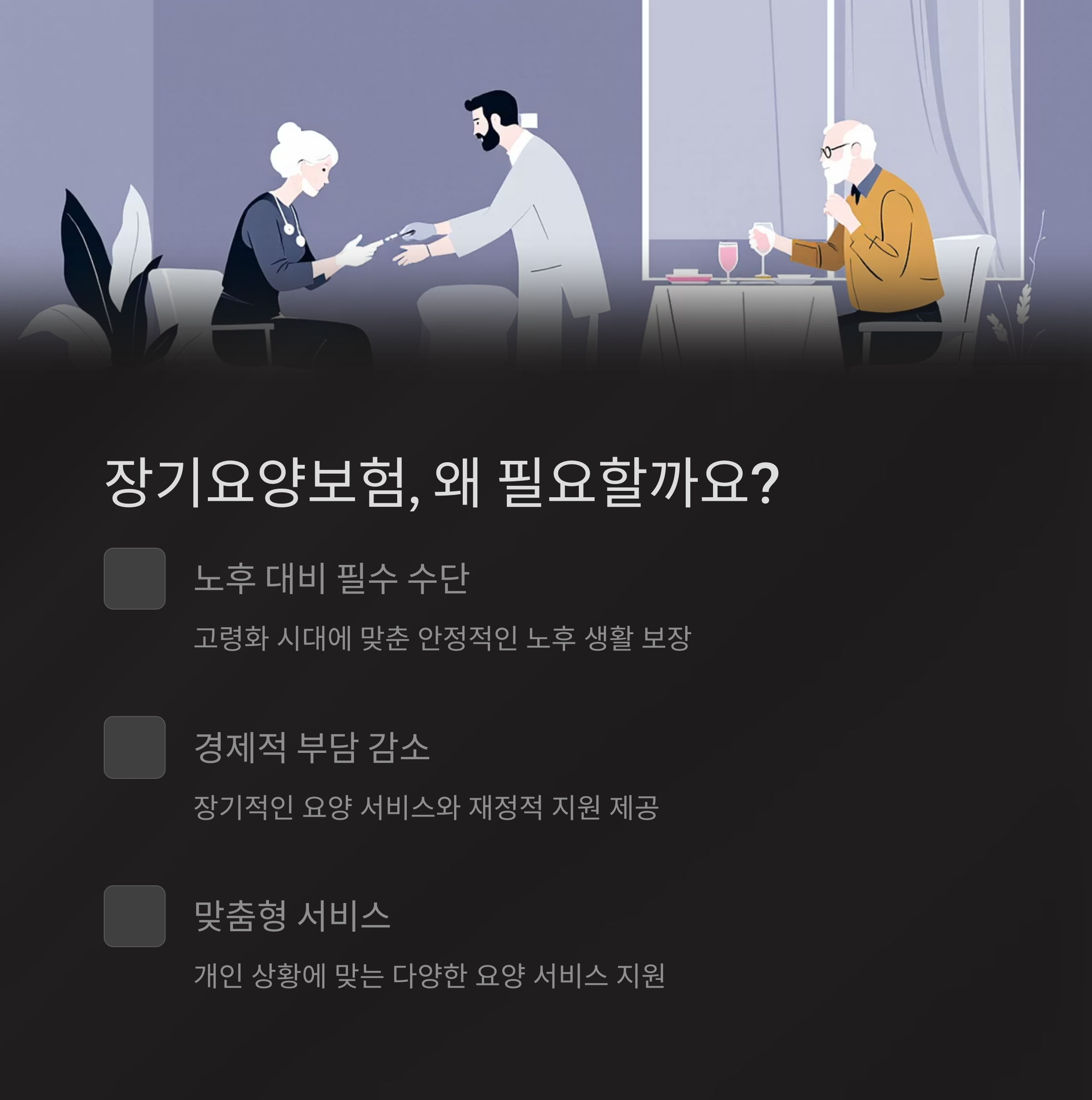 장기적인 요양 서비스와 재정적 지원을 통해 노후의 경제적 부담을 덜어주고 안정적인 삶을 보장합니다.