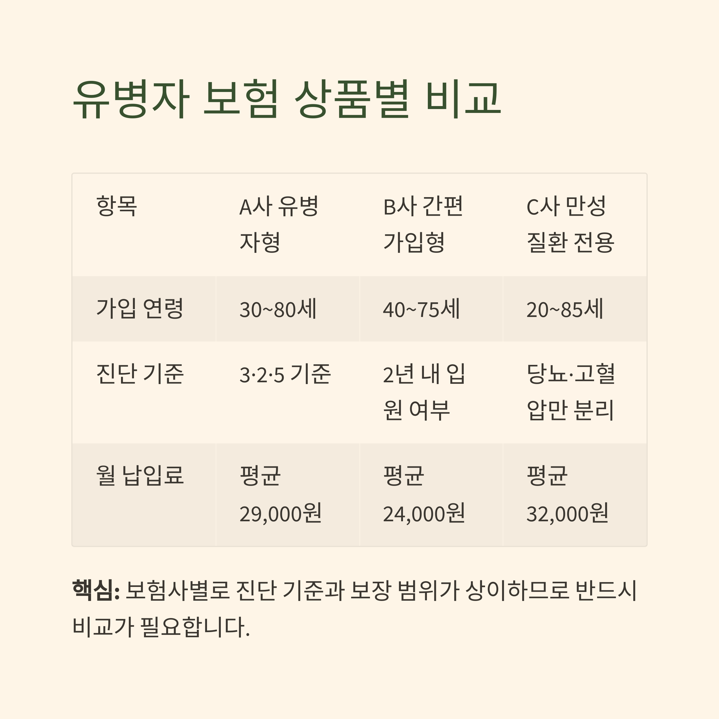 핵심: 보험사별로 진단 기준과 보장 범위가 상이하므로 반드시 비교가 필요합니다.