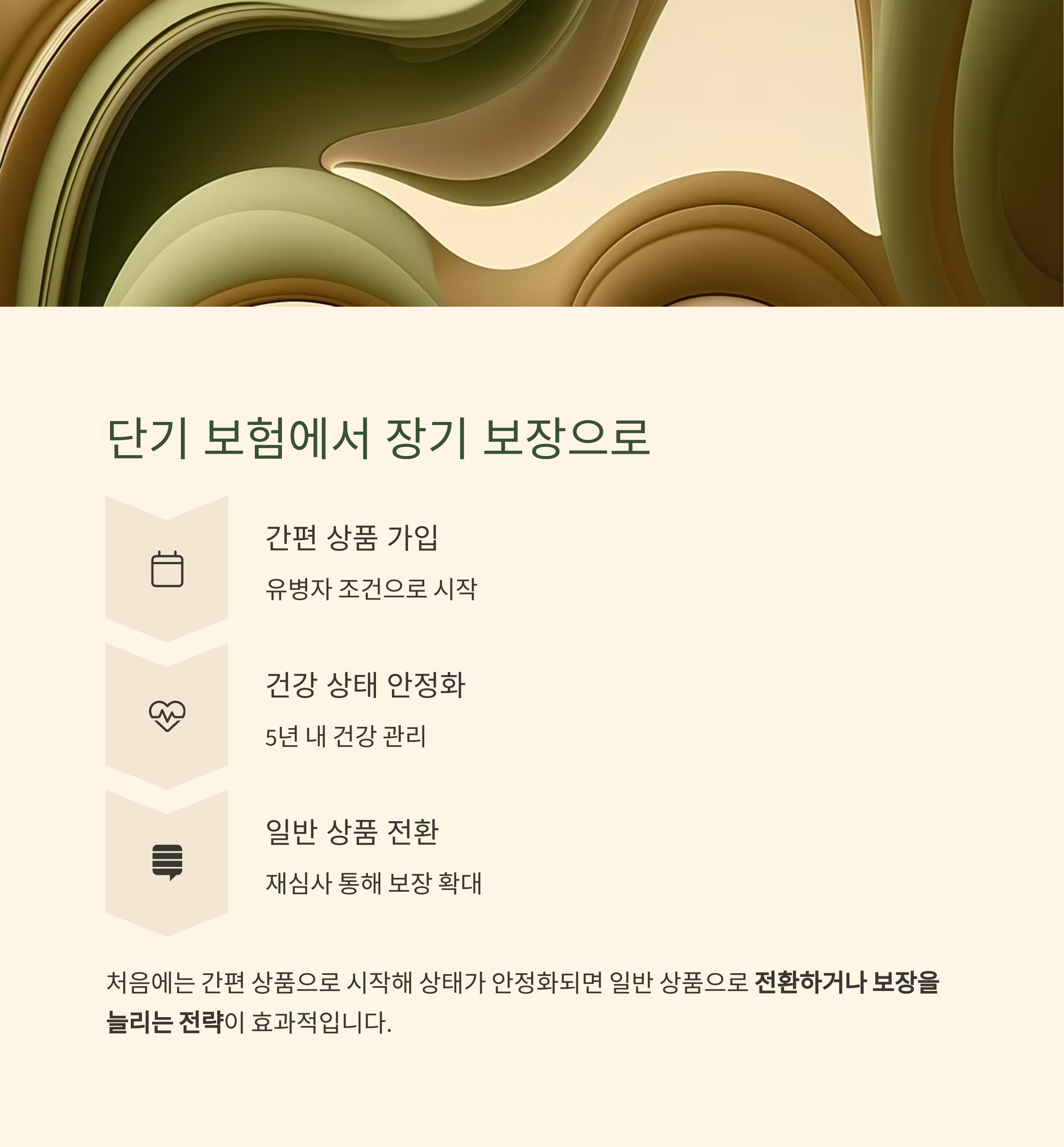 상태가 안정화되면 일반 상품으로 전환하거나 보장을 늘리는 전략이 효과적입니다.