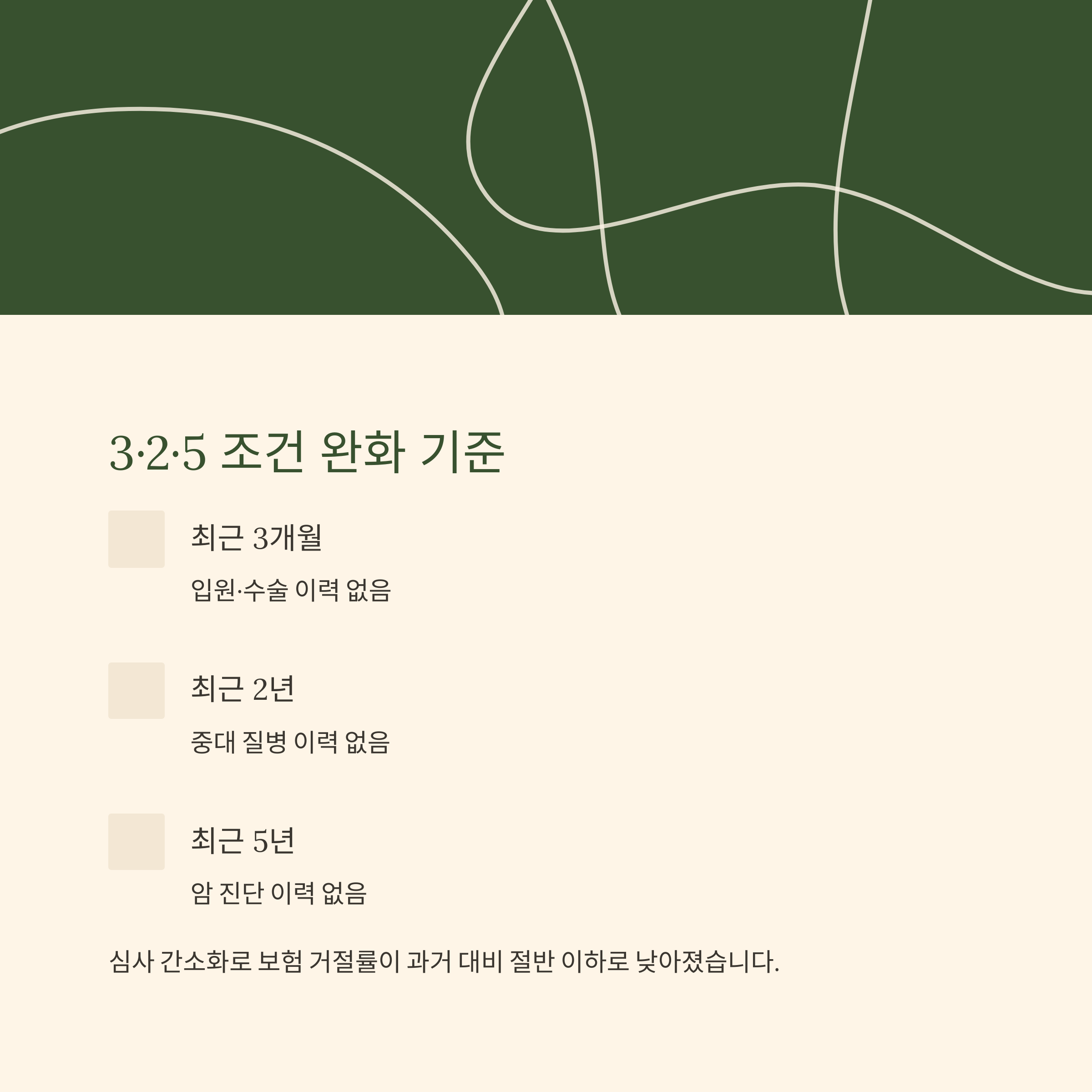 2025년 유병자 보험은 '3·2·5' 조건 완화 기준이 핵심입니다.