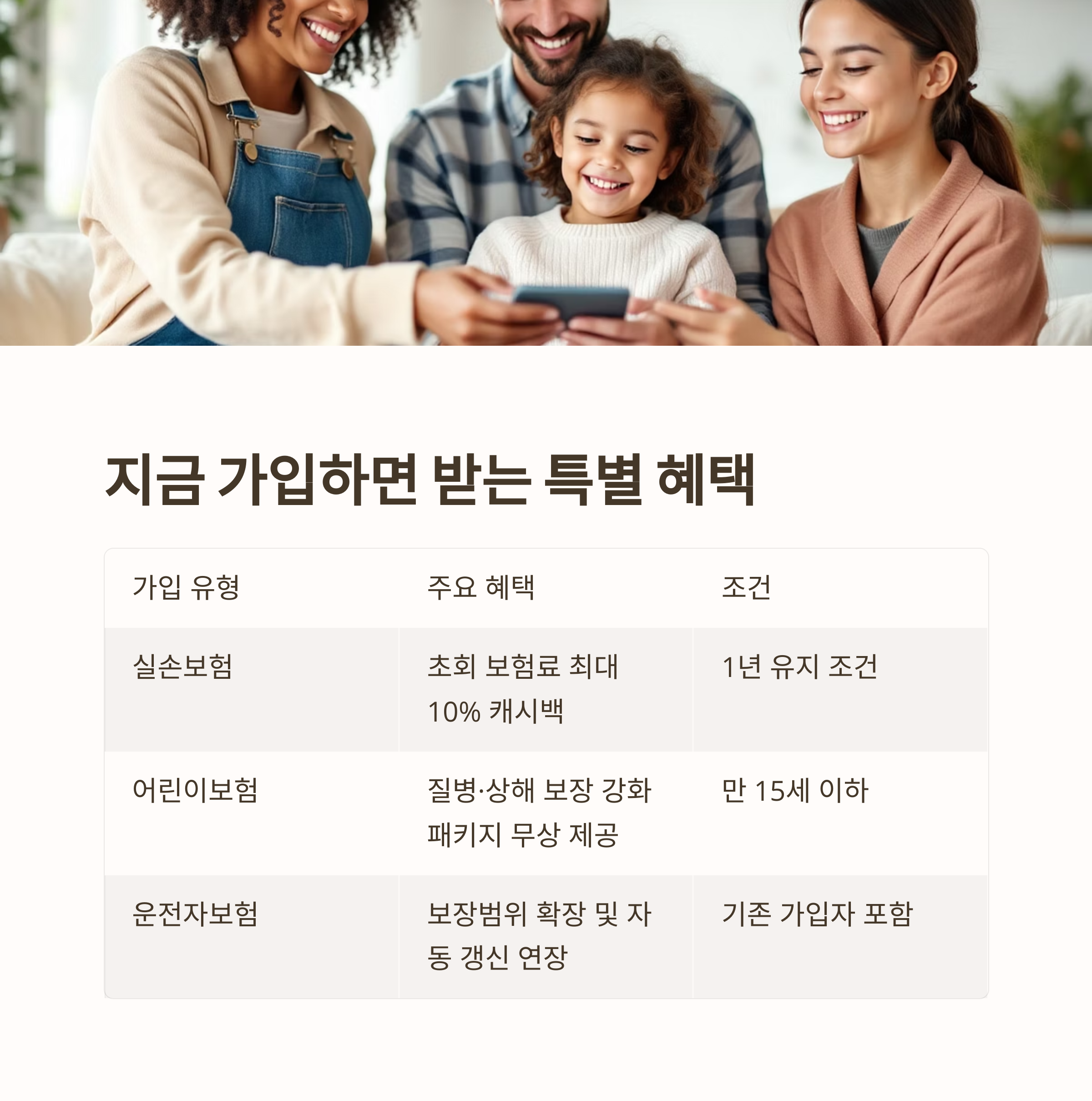 | 어린이보험 가입 | 질병·상해 보장 강화 패키지 무상 제공 | 만 15세 이하 |