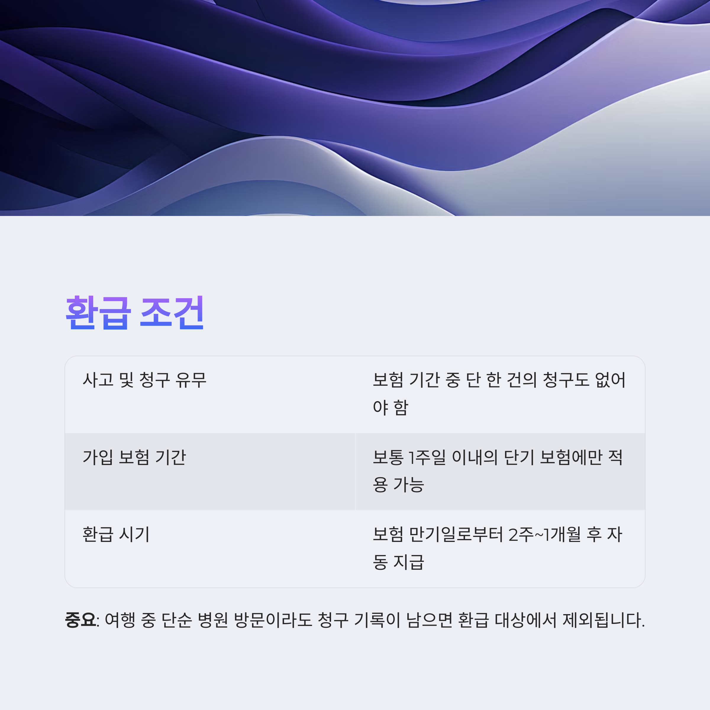 중요: 여행 중 단순 병원 방문이라도 청구 기록이 남으면 환급 대상에서 제외됩니다.