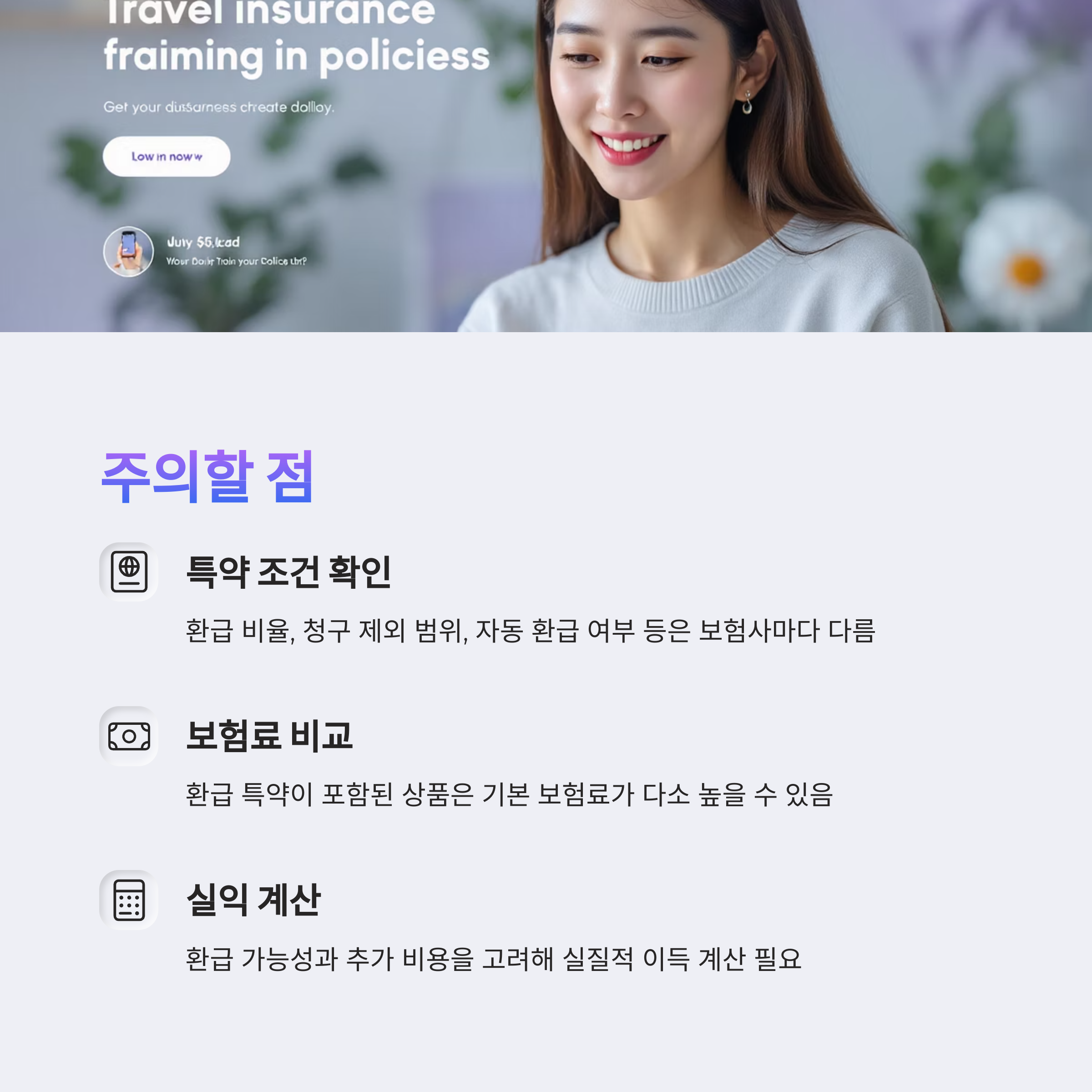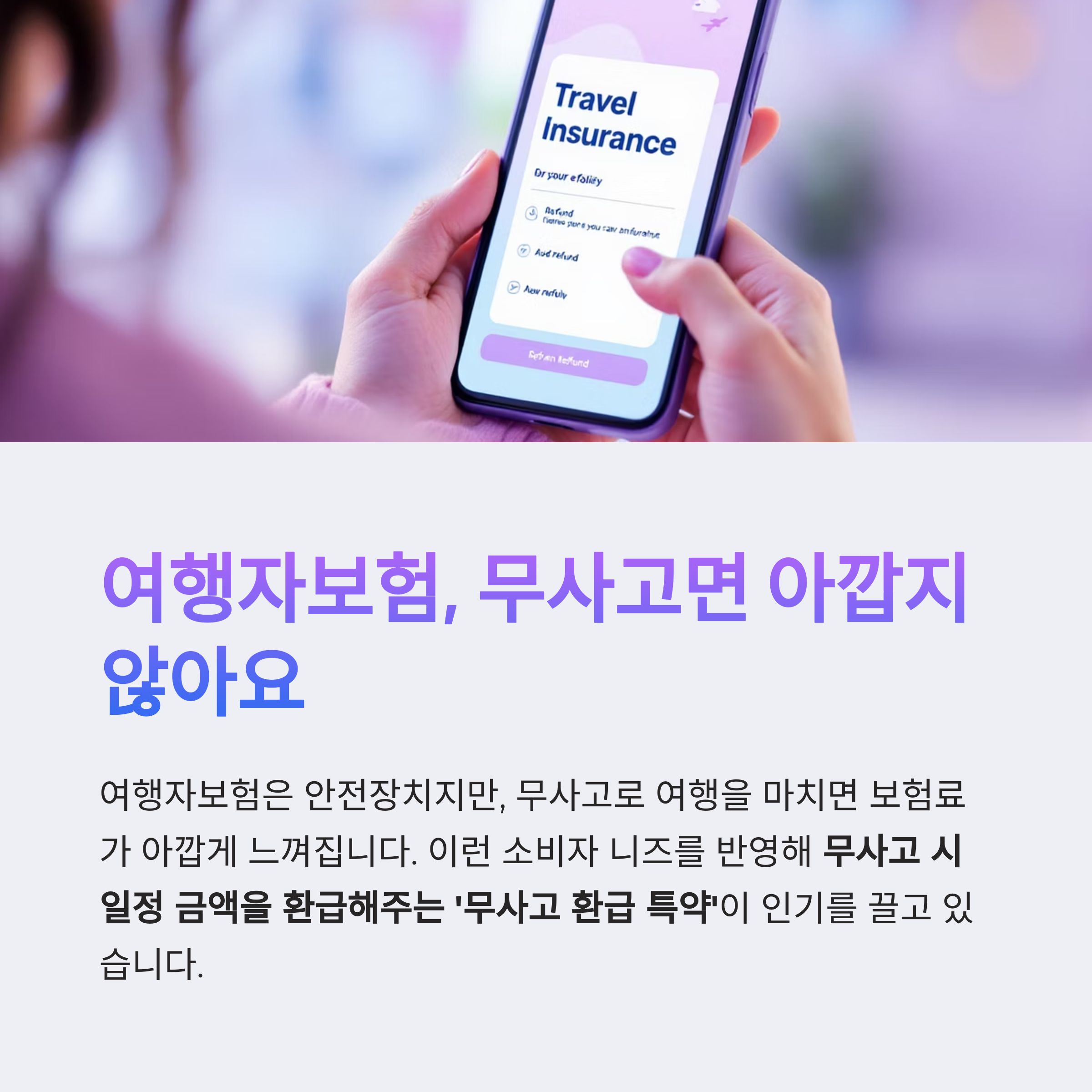 주로 단기 여행자보험에 추가되는 형태로, 여행 종료 후 청구 내역이 없으면 최대 10%까지 환급되는 구조입니다.
