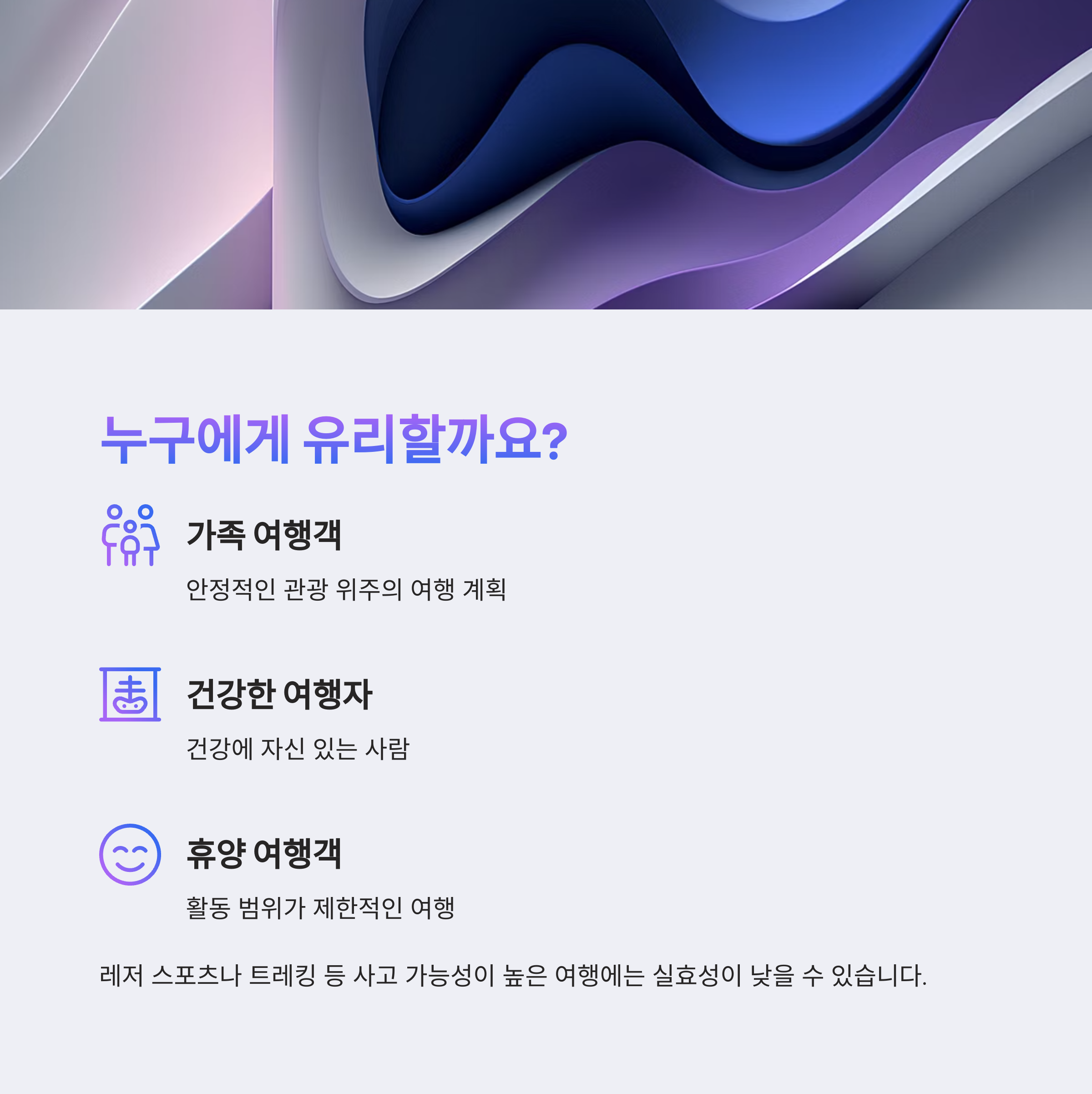 반면, 레저 스포츠나 트레킹 등 사고 가능성이 높은 여행을 계획하고 있다면 이 특약은 실효성이 낮을 수 있습니다.