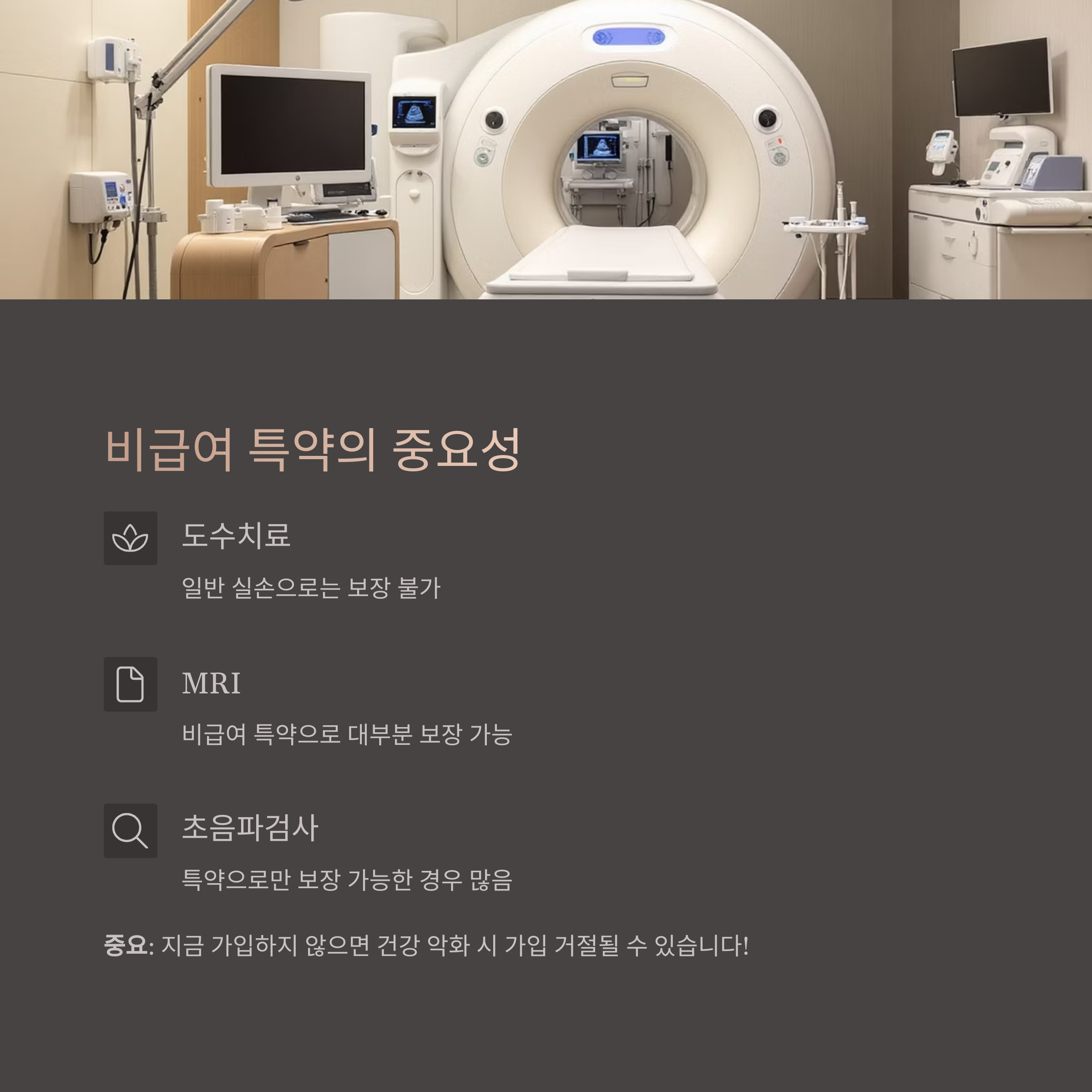 중요: 실손은 갱신형 보험이므로, 비급여 특약은 지금 안 들면