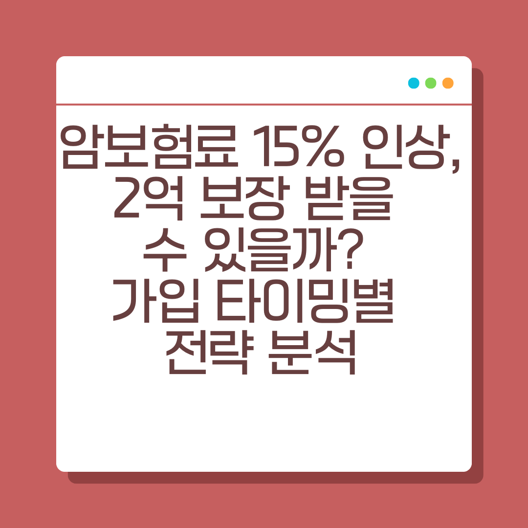 최근 암보험료가 15%까지 인상되면서 기존 보험과 신규 보험의 가입 타이밍에 대한 고민이 깊어지고 있습니다. 특히 2억 보장이라는 강력한 문구에 현혹되기 쉬운 지금, 실제 수익률과 보장 효과를 숫자로 비교해보는 것이 필요합니다. 이 글에서는 연령별, 상황별로 최적의 가입 전략을 분석하고, 보험료 대비 보장금액이 투자 측면에서 얼마나 효율적인지 세밀하게 살펴보겠습니다.