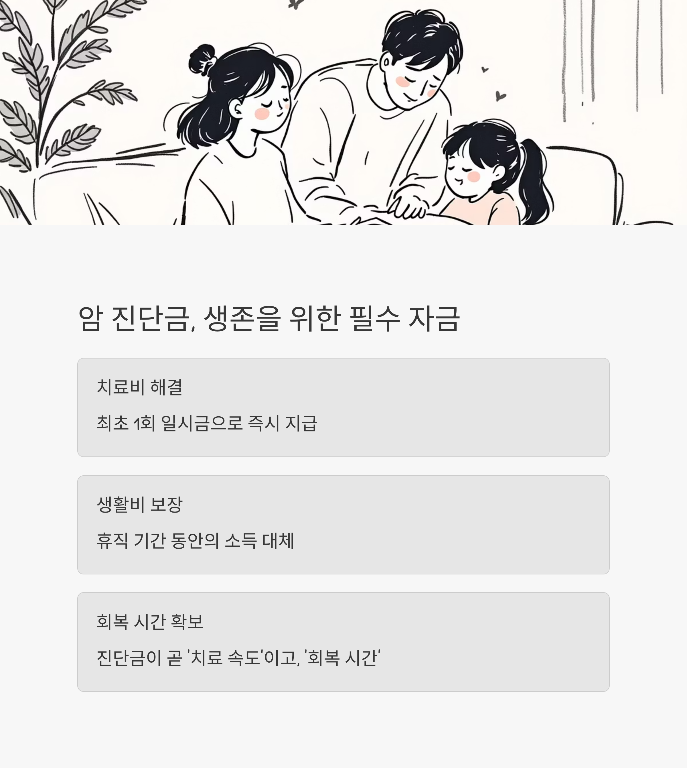 진단금 하나로 가족 전체의 생활 리스크를 줄일 수 있습니다