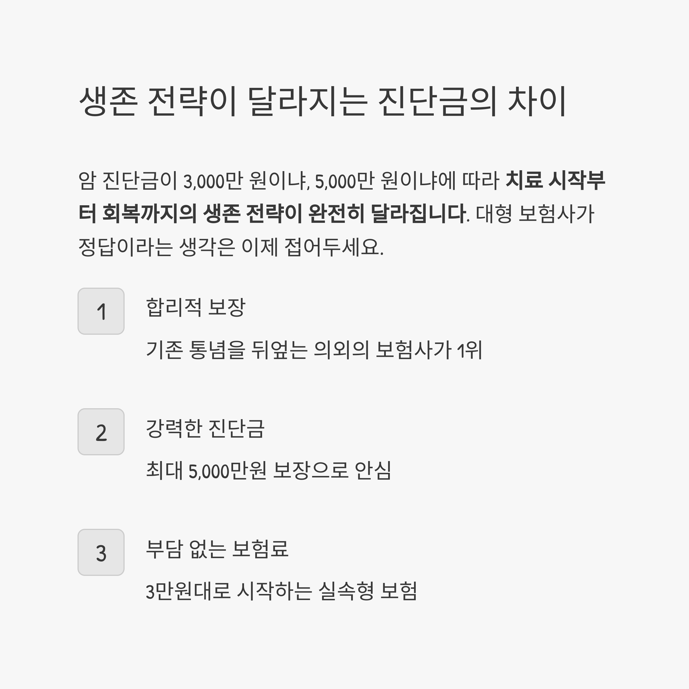 암 진단금이 3,000만 원이냐, 5,000만 원이냐에 따라