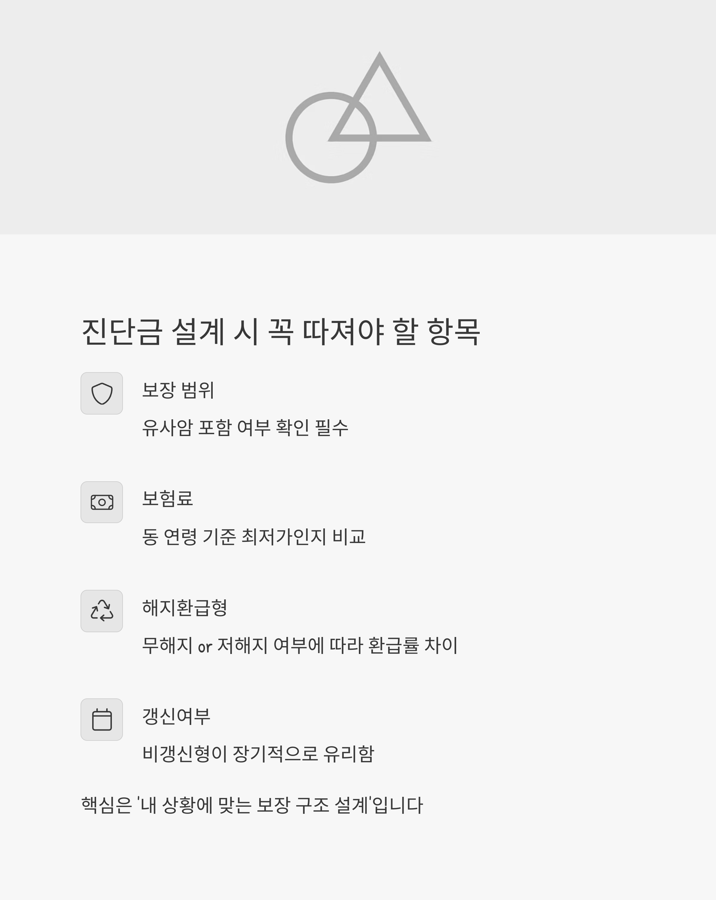 진단금 중심 설계 시 꼭 따져야 할 항목은?