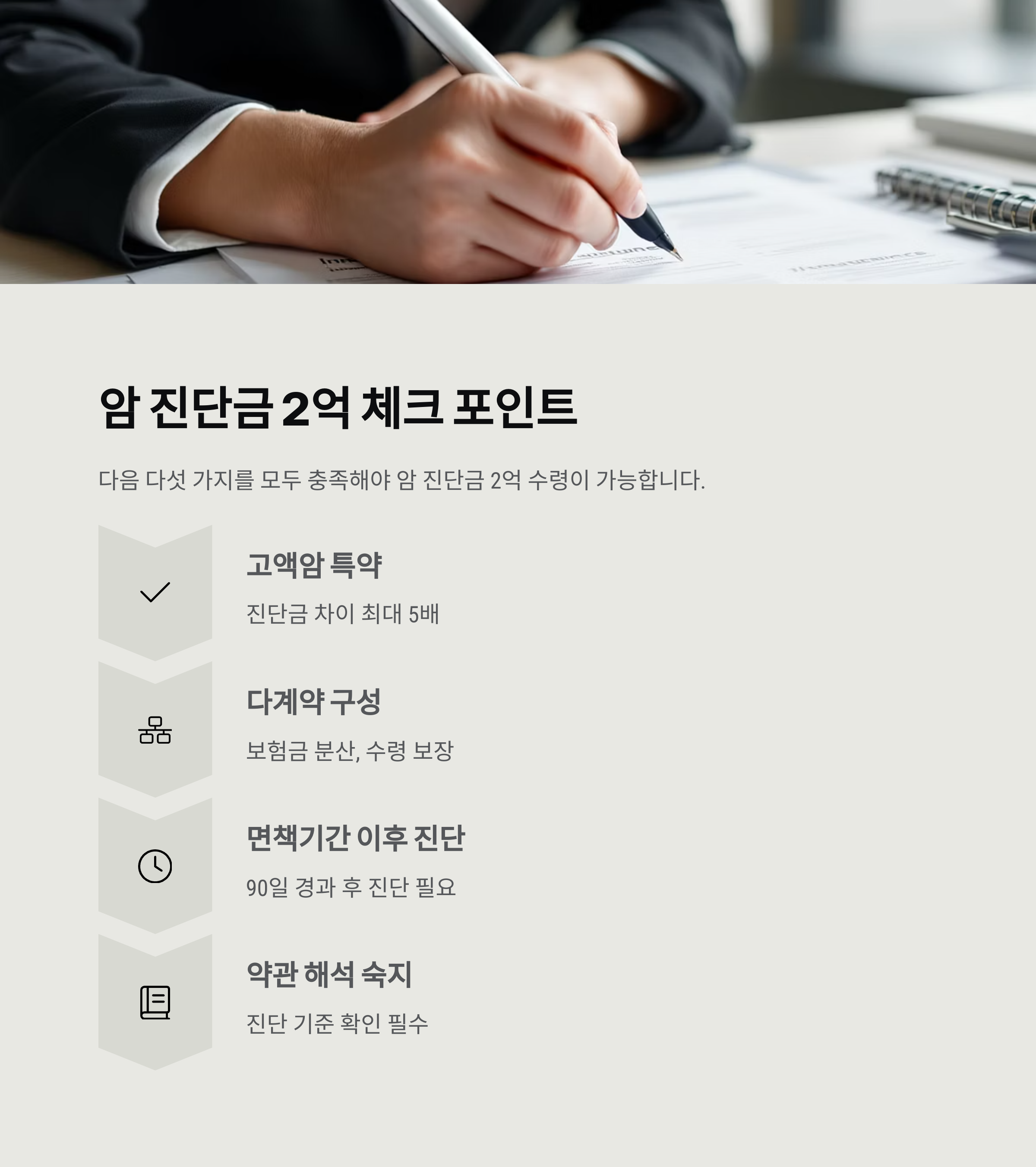중요: 이 다섯 가지를 모두 충족해야 암 진단금 2억 수령이 가능합니다.