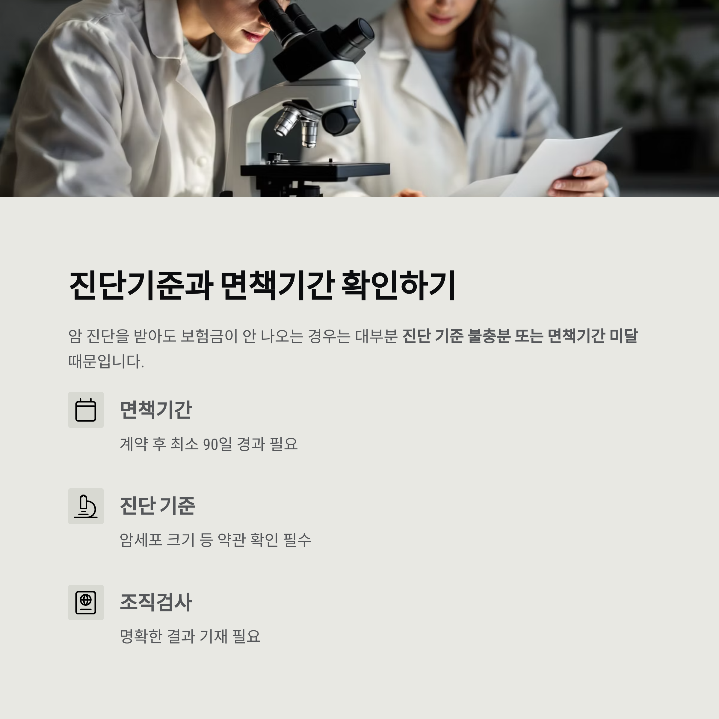 "암 진단금 제대로 받으려면 최소 90일은 지난 후 진단이 나와야 하며,