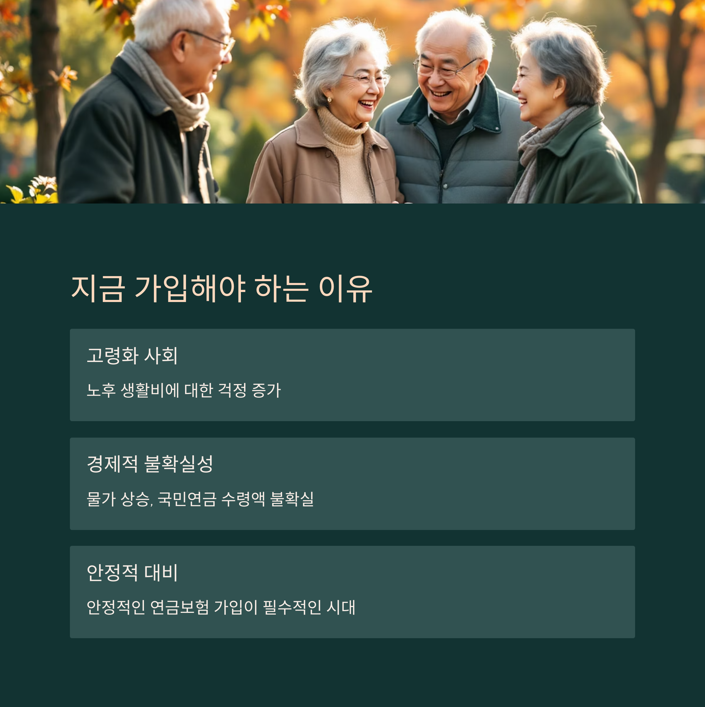 안정적인 연금보험 가입이 필수적인 시대가 되었습니다.
