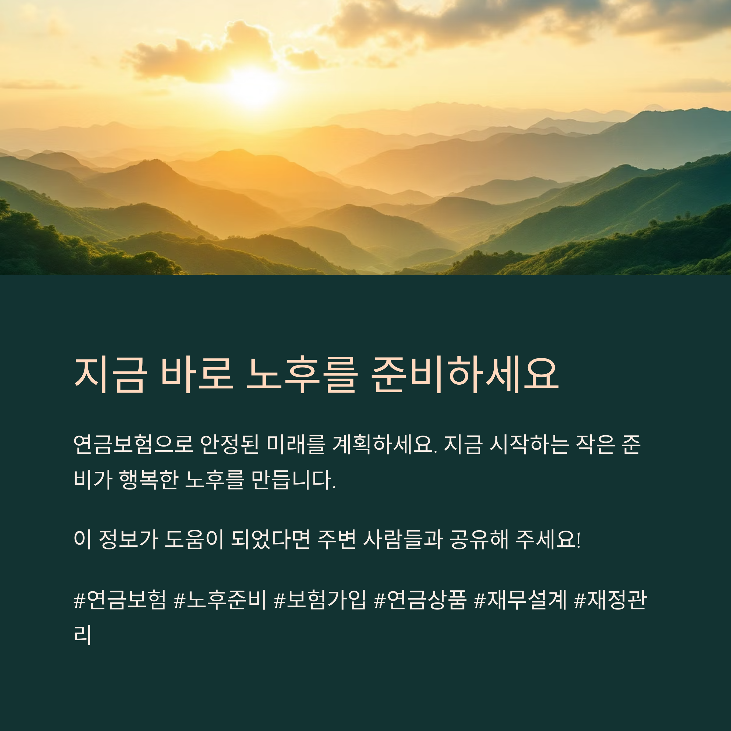 지금 바로 연금보험에 가입하여 안정적인 노후 생활을 준비해 보세요.