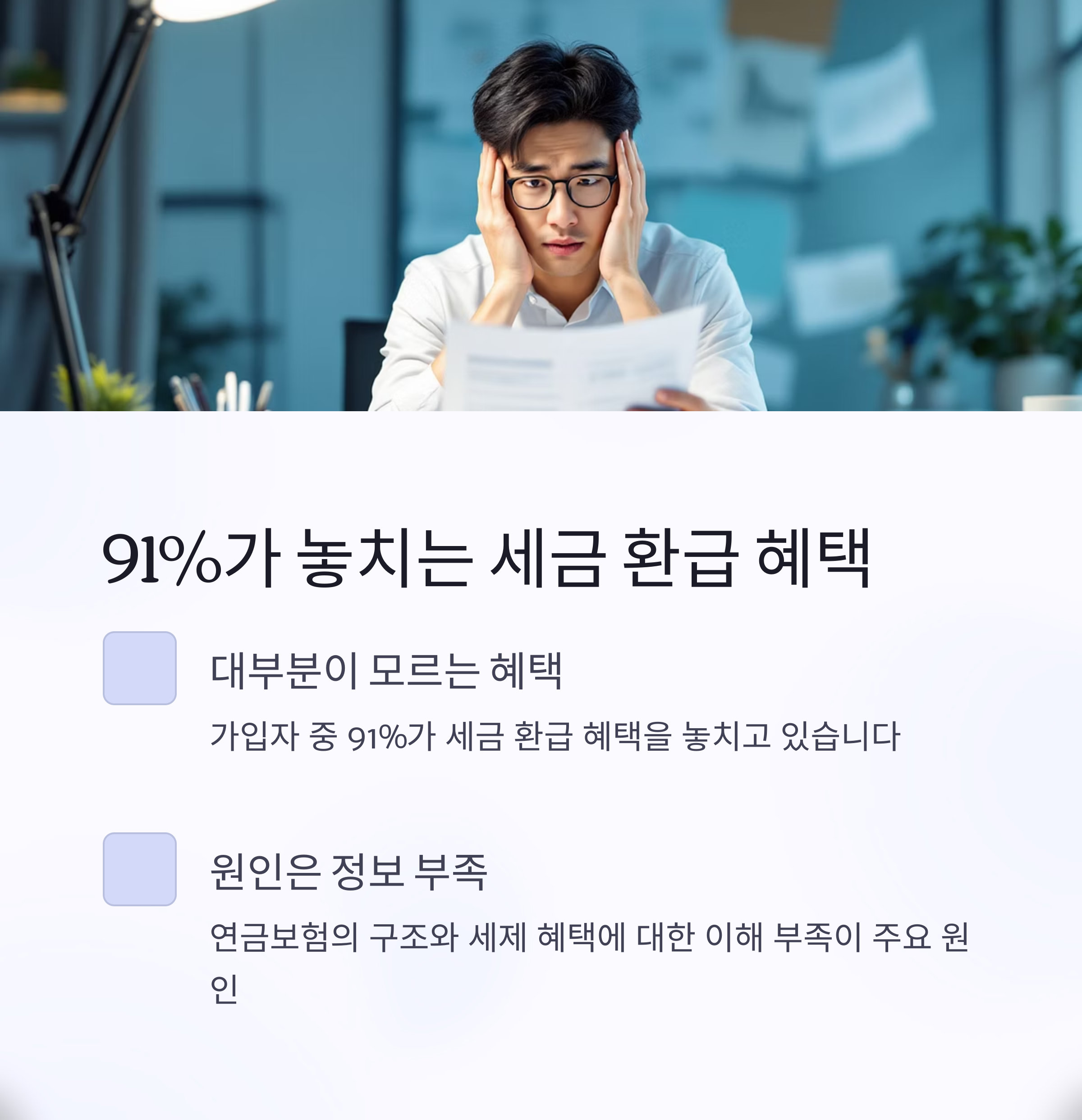 가입자 중 91%가 놓치고 있는 세금 환급의 핵심 조건은 연금보험의 구조와 세제 혜택을 제대로 알지 못해서입니다.