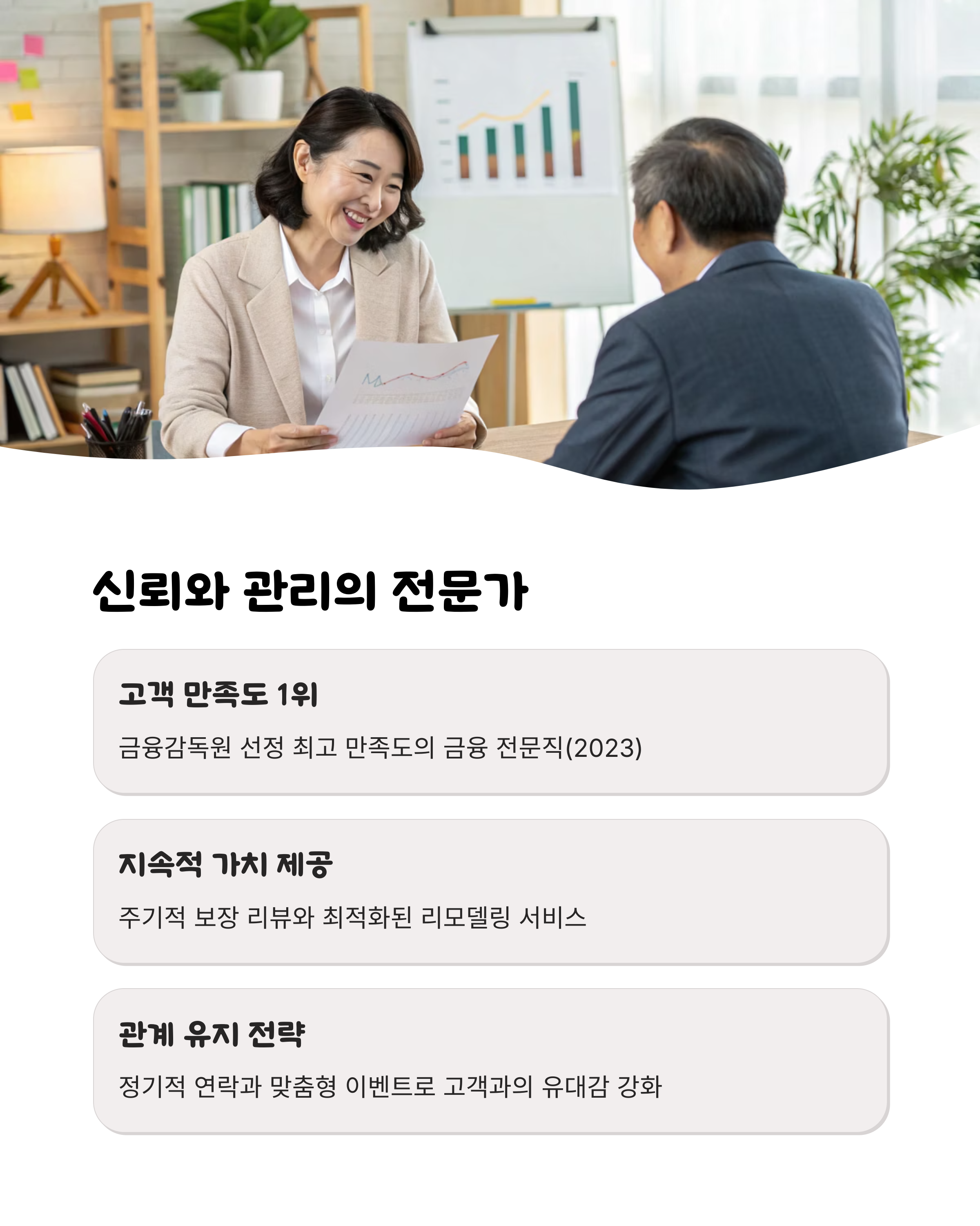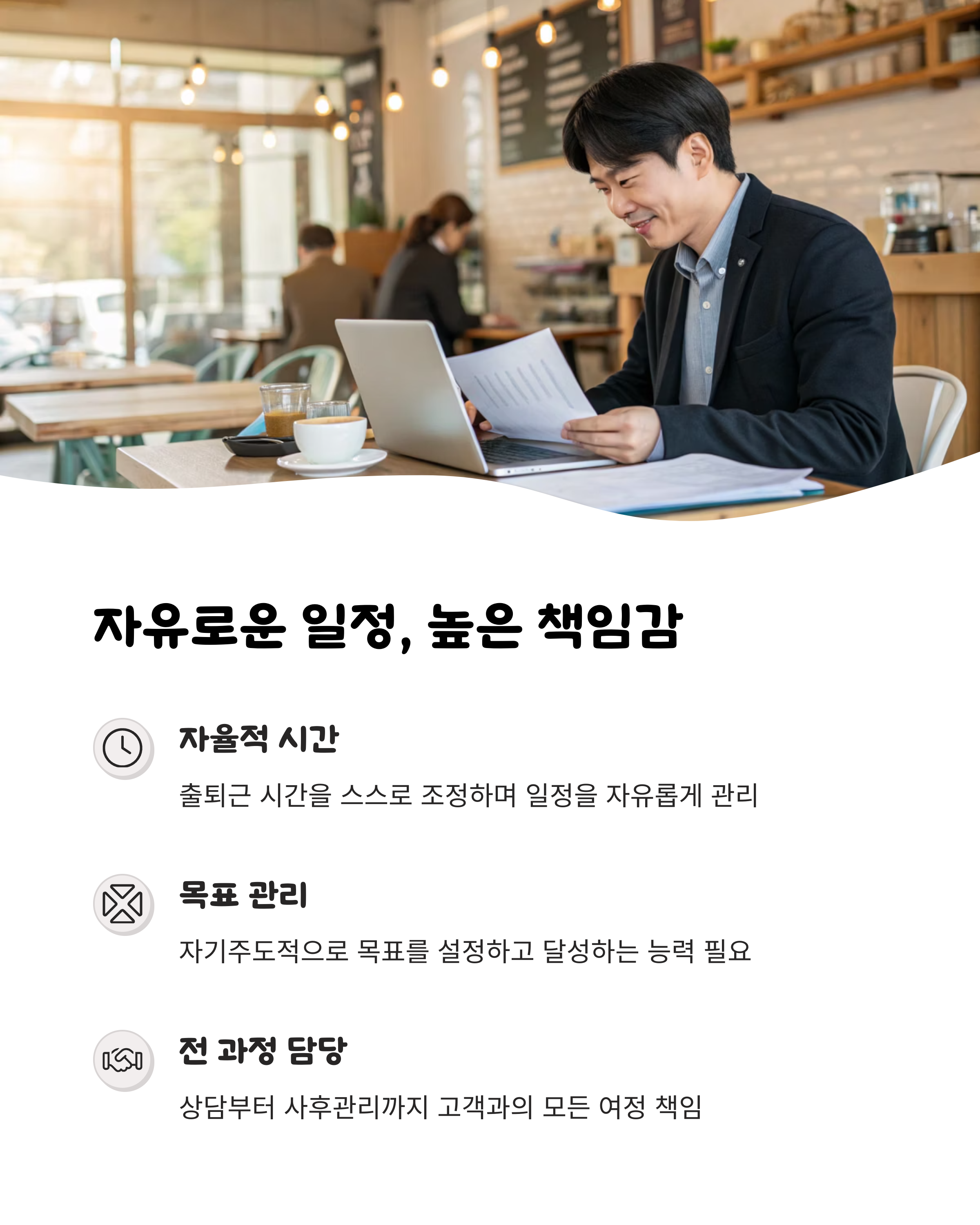 | 설계사에서 매니저로의 성장 모델 | 인재 리더십을 기반으로 한 장기 성장 | 안정성과 확장성을 겸비한 커리어 |