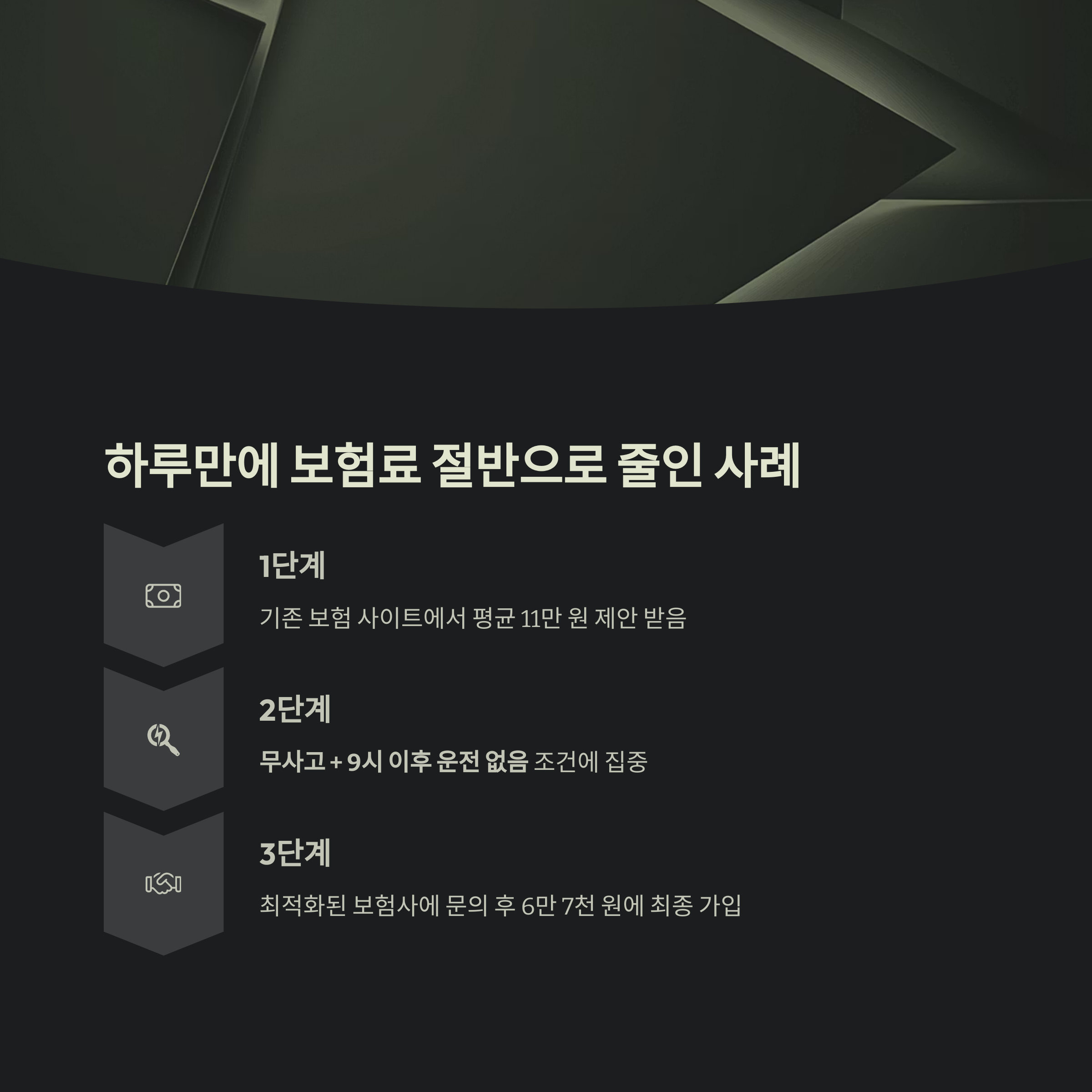 하루만에 보험료를 절반 가까이 줄인 한 가입자의 예시입니다.