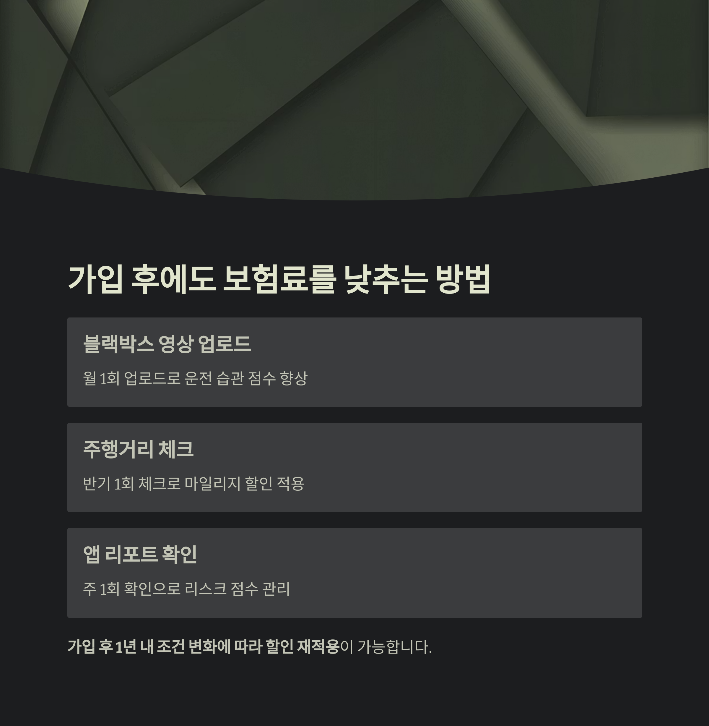 중요: 보험사 대부분은 가입 후 1년 내 조건 변화에 따라 할인 재적용이 가능합니다.