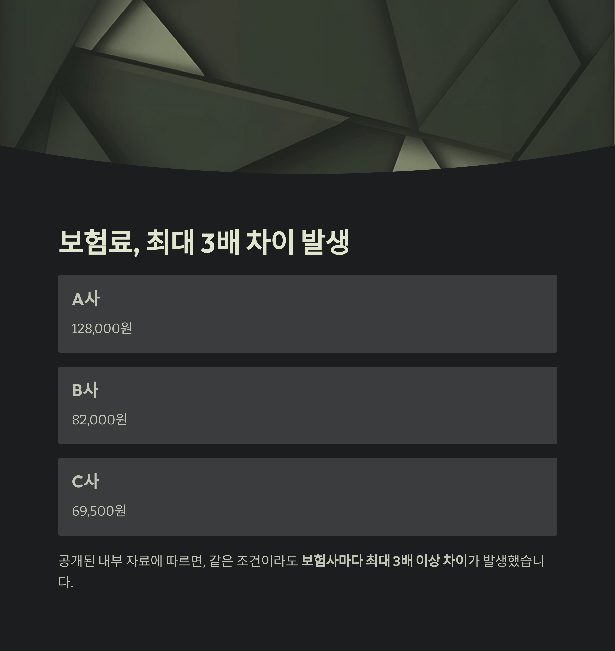 같은 조건이라도 보험사마다 최대 3배 이상 차이가 발생했습니다.