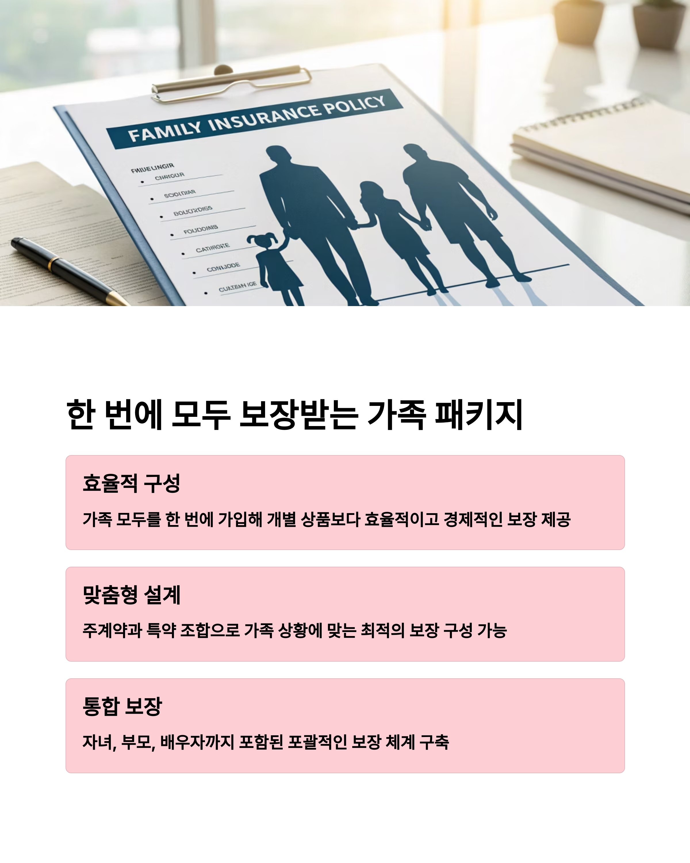 가족보험 패키지는 가족 구성원 전체를 하나의 계약으로 묶어