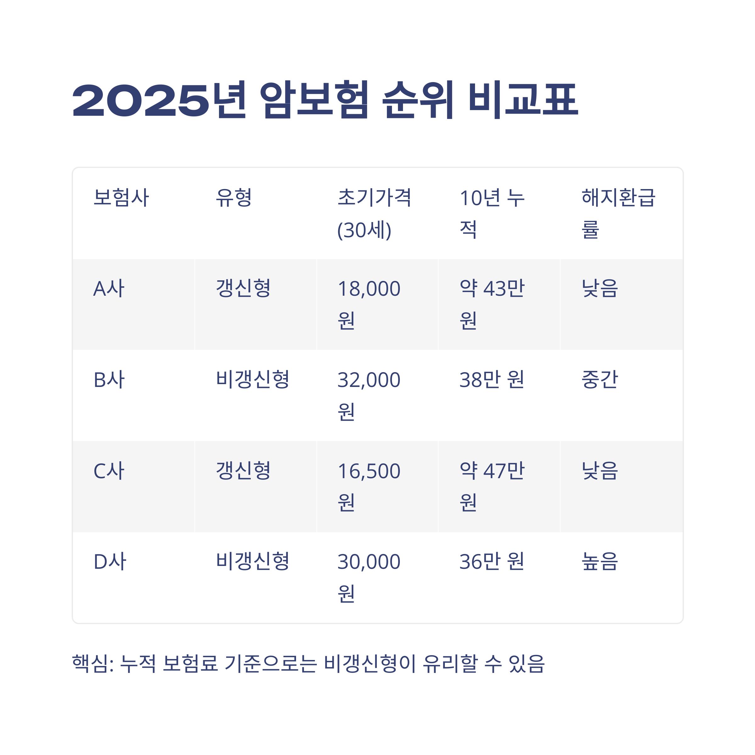 | A사 | 갱신형 | 18,000원 | 약 43만 원 | 낮음 |