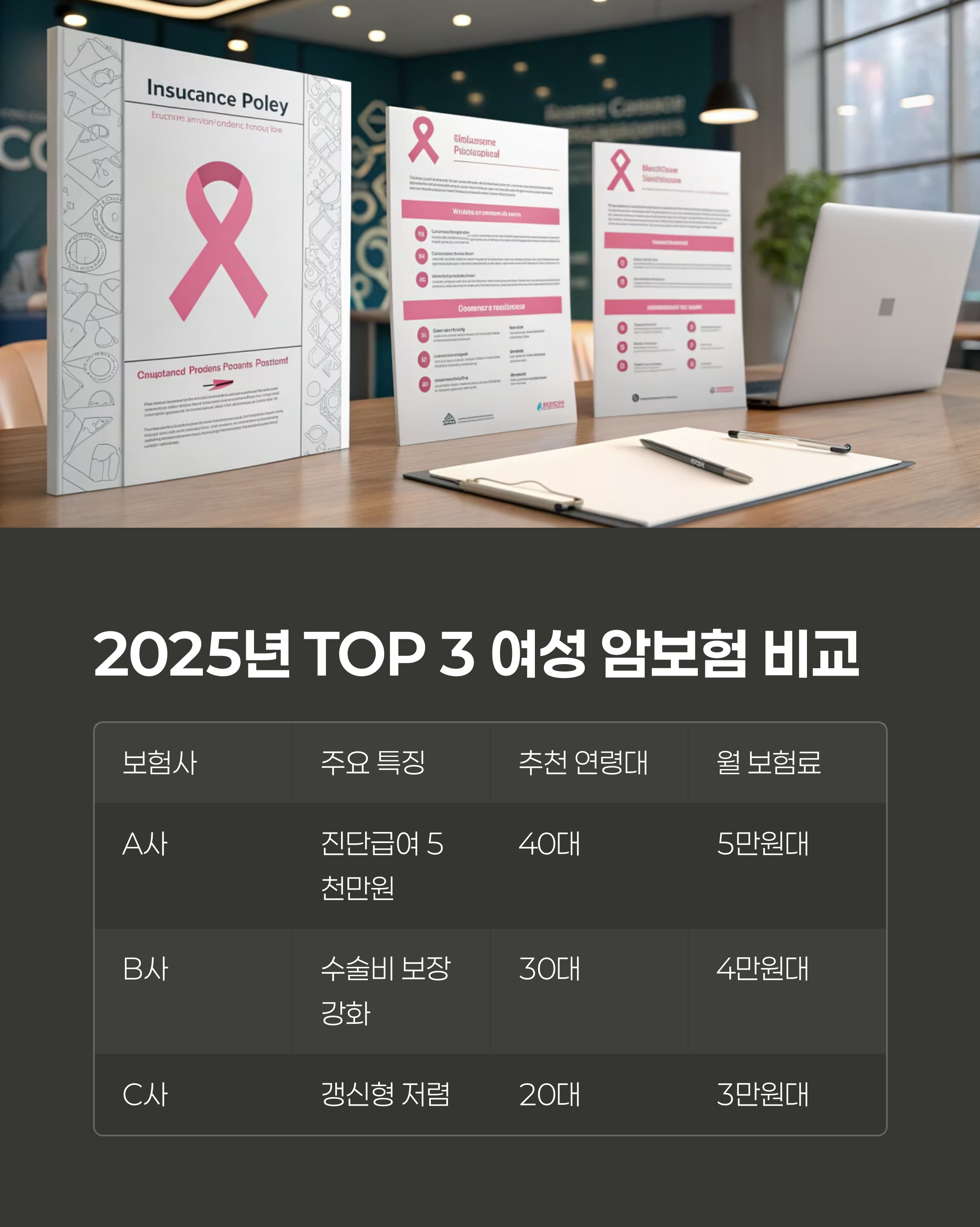 2025년 추천 여성 전용 암보험 TOP 3 비교