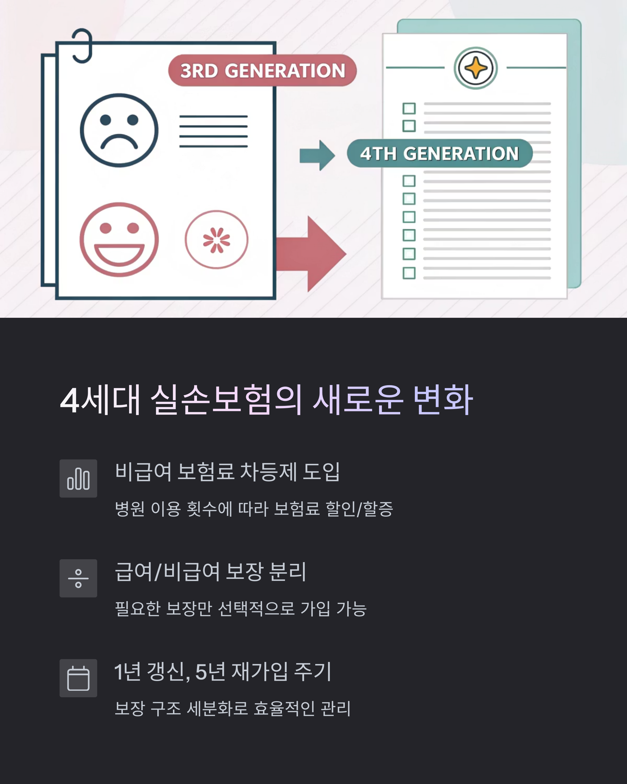 과잉 진료를 줄이고, 보험료를 합리화하기 위해 개편된 상품입니다.