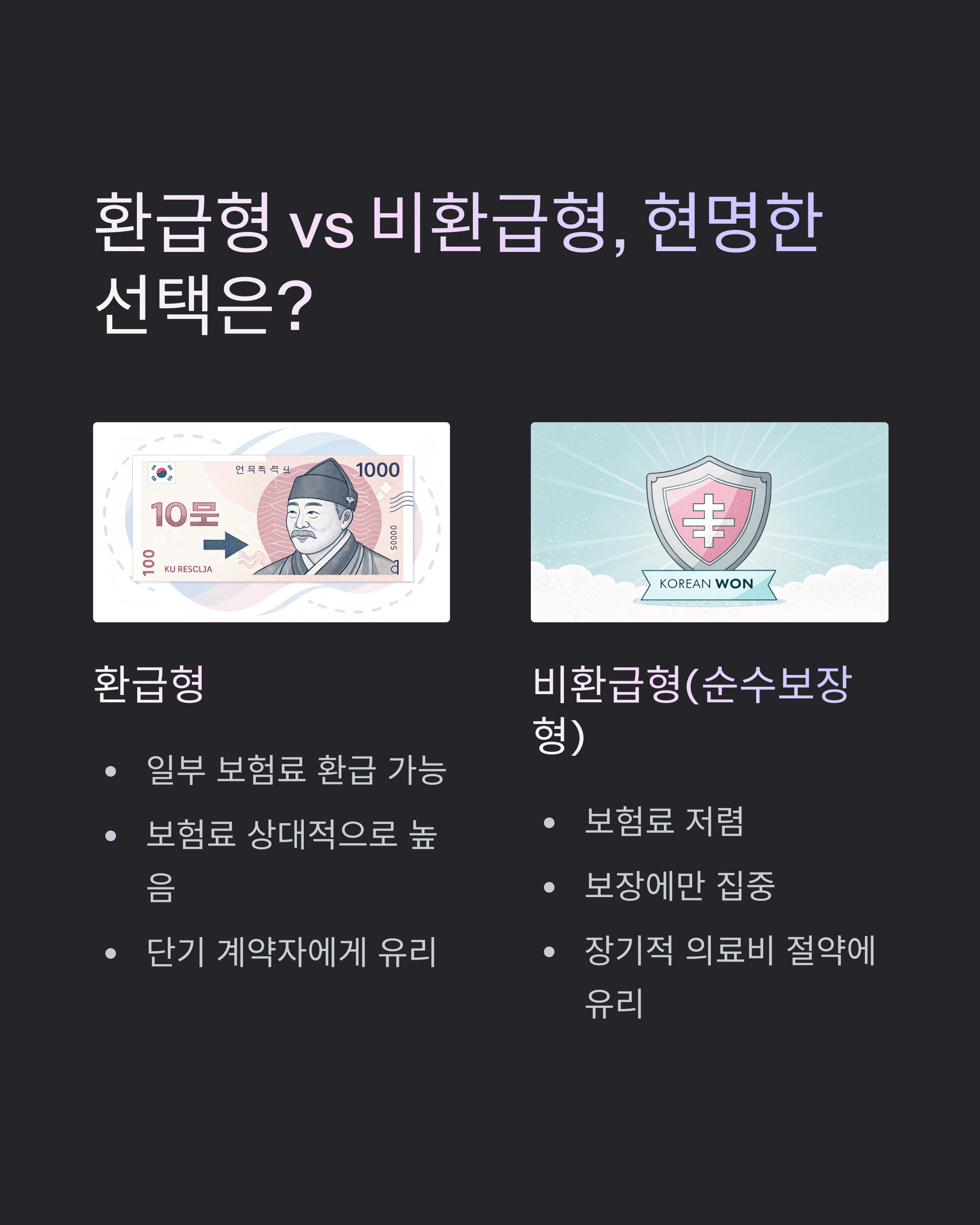 환급형은 일정 기간이 지나면 일부 보험료를 돌려받을 수 있지만,