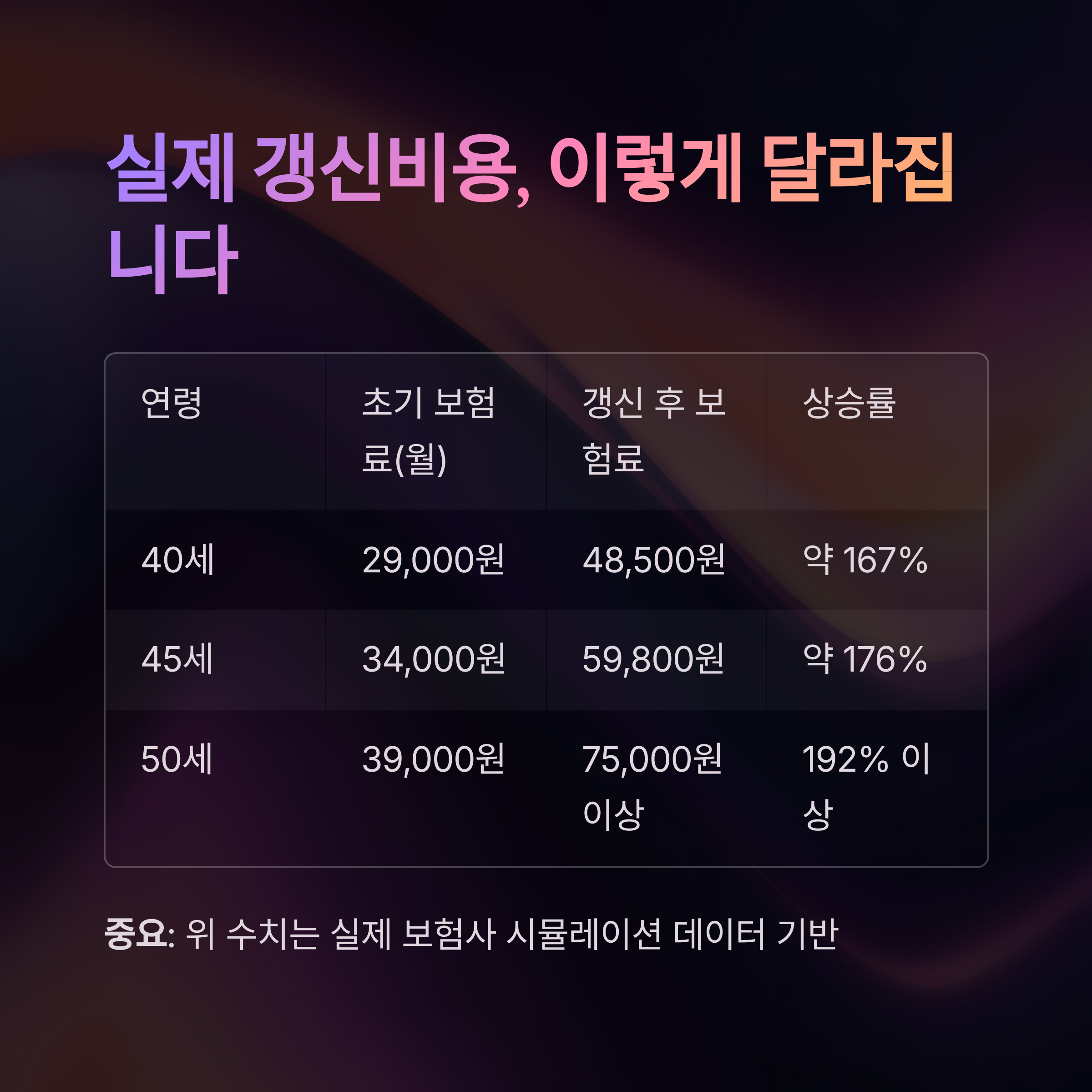 갱신 시 보험료가 2~3배 이상 상승할 수 있습니다.
