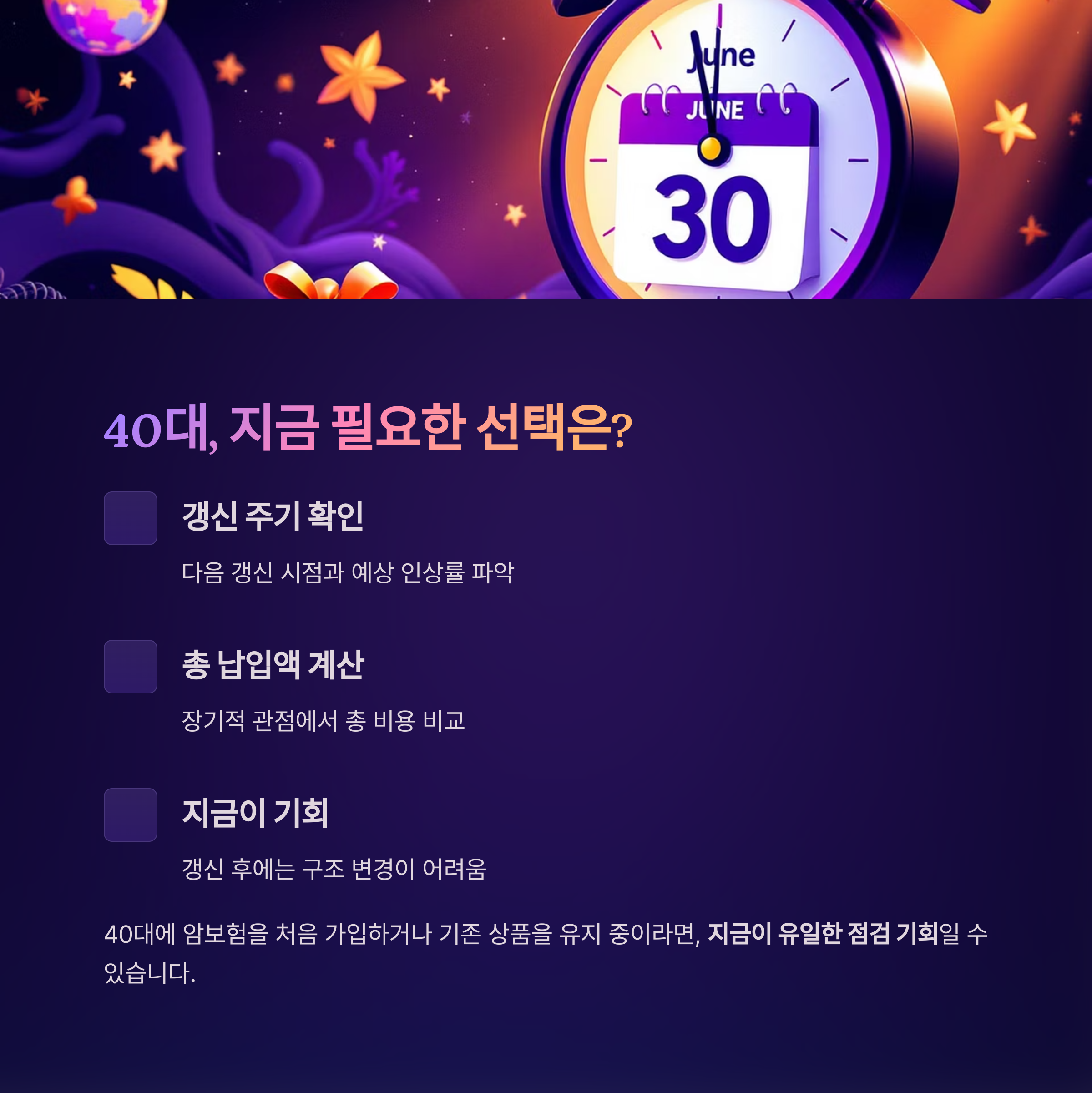 40대에 암보험을 처음 가입하거나 기존 상품을 유지 중이라면,