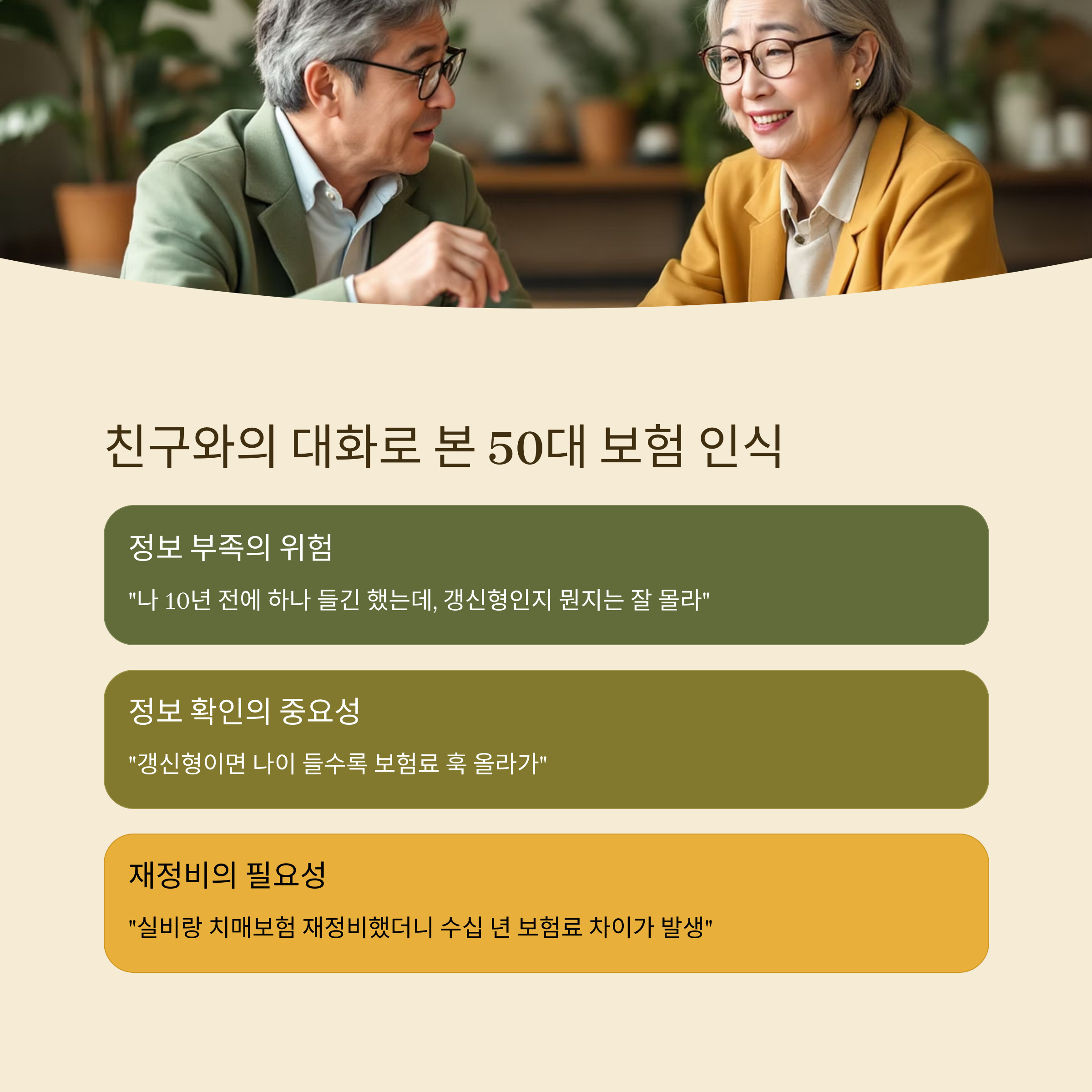 상황극: 친구와의 대화로 본 50대 보험 인식