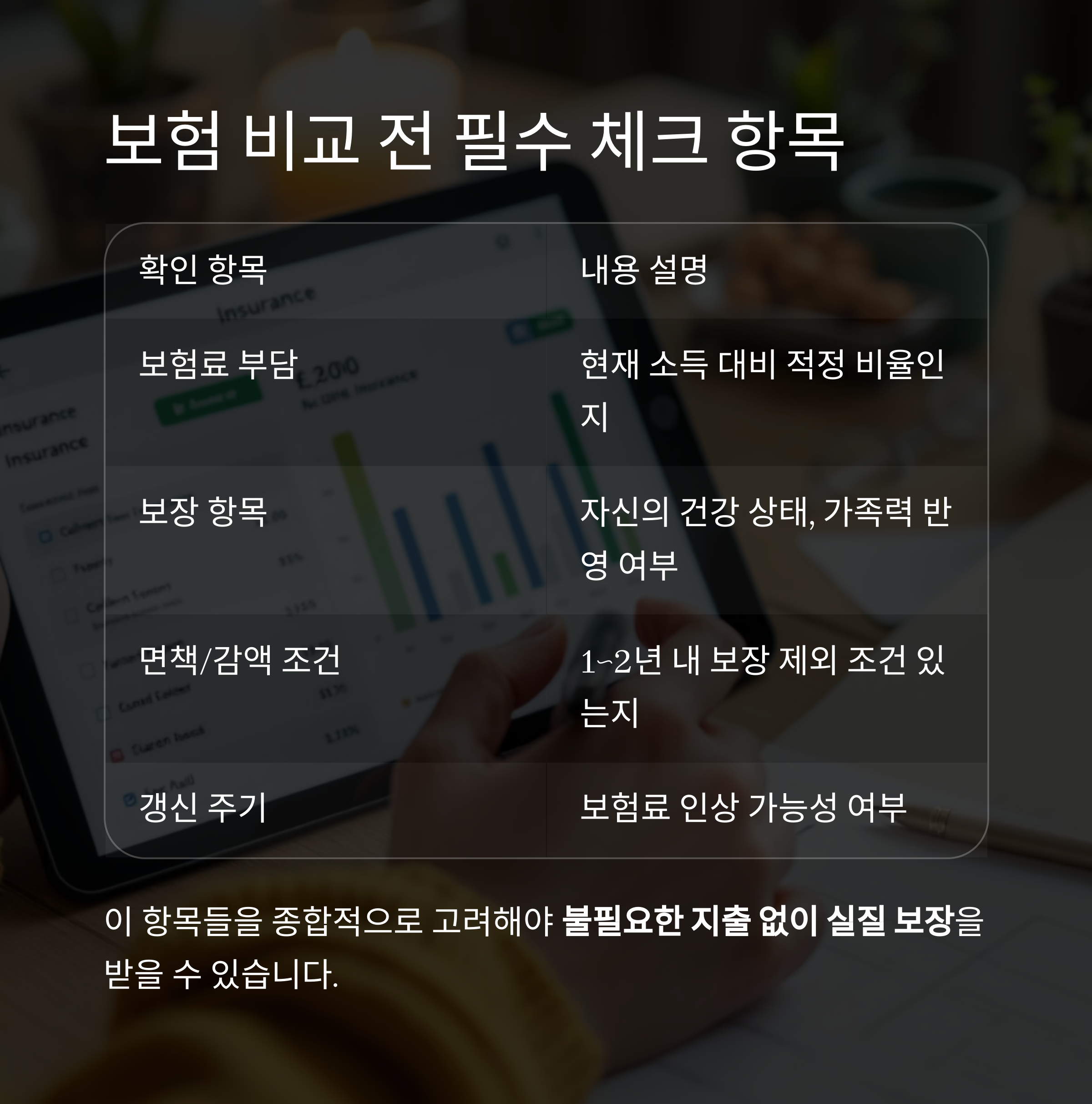 이 항목들을 종합적으로 고려해야 불필요한 지출 없이 실질 보장을 받을 수 있습니다