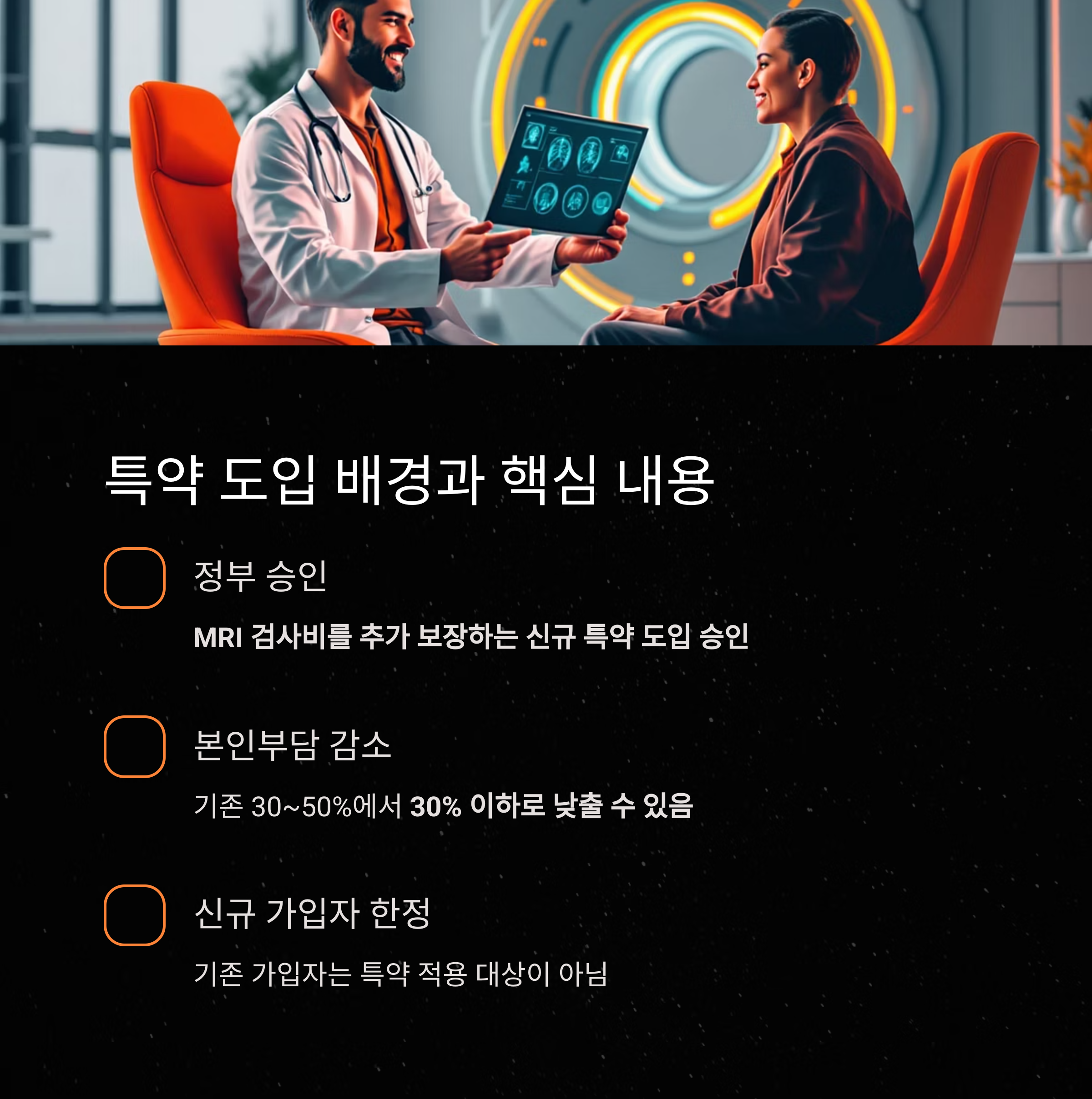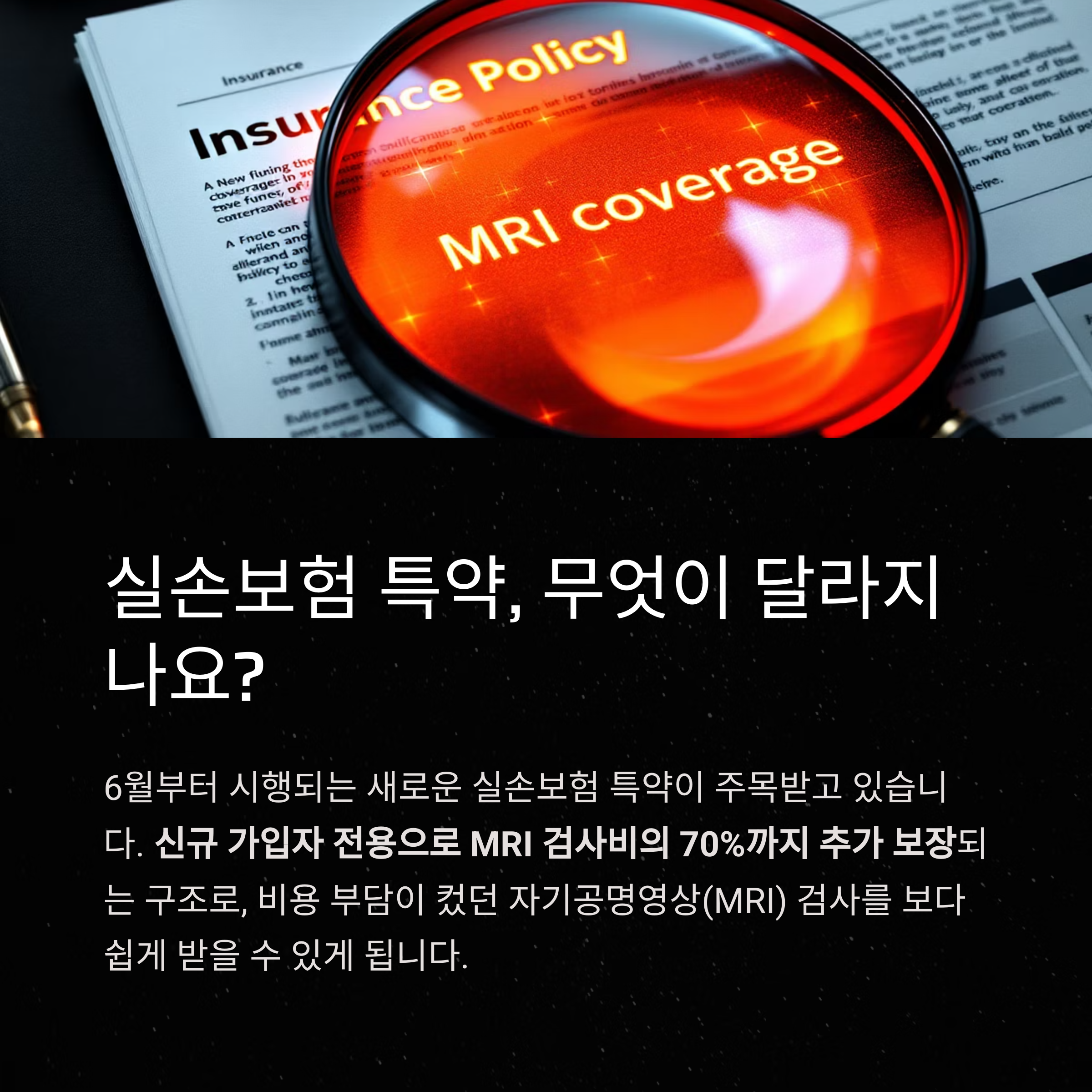 특히 신규 가입자 전용으로 MRI 검사비의 70%까지 추가 보장되는 구조로,