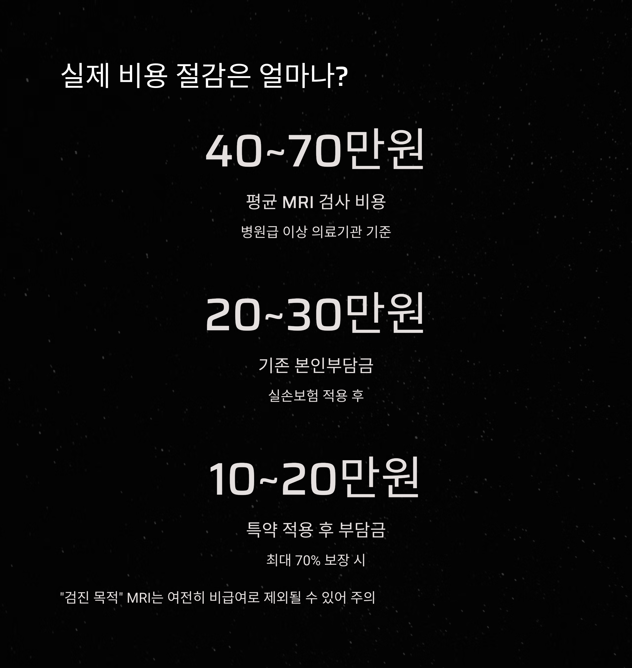 MRI 검사는 병원급 이상 의료기관에서 평균 40만원~70만원기존에는 본인 20~30만원의 본인부담금이 발생했지만,