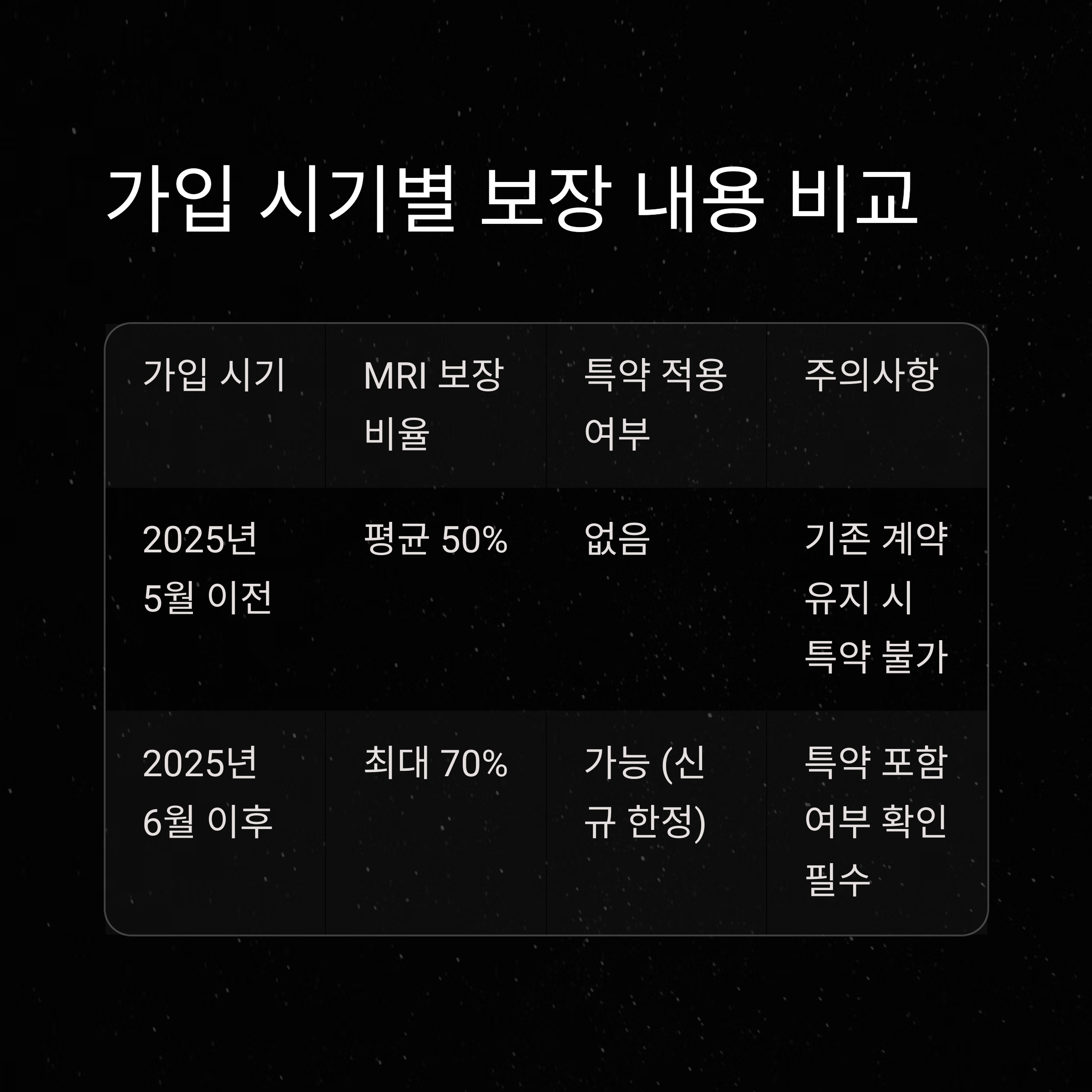 가입 시기 MRI 보장 비율 특약 적용 여부 주의사항