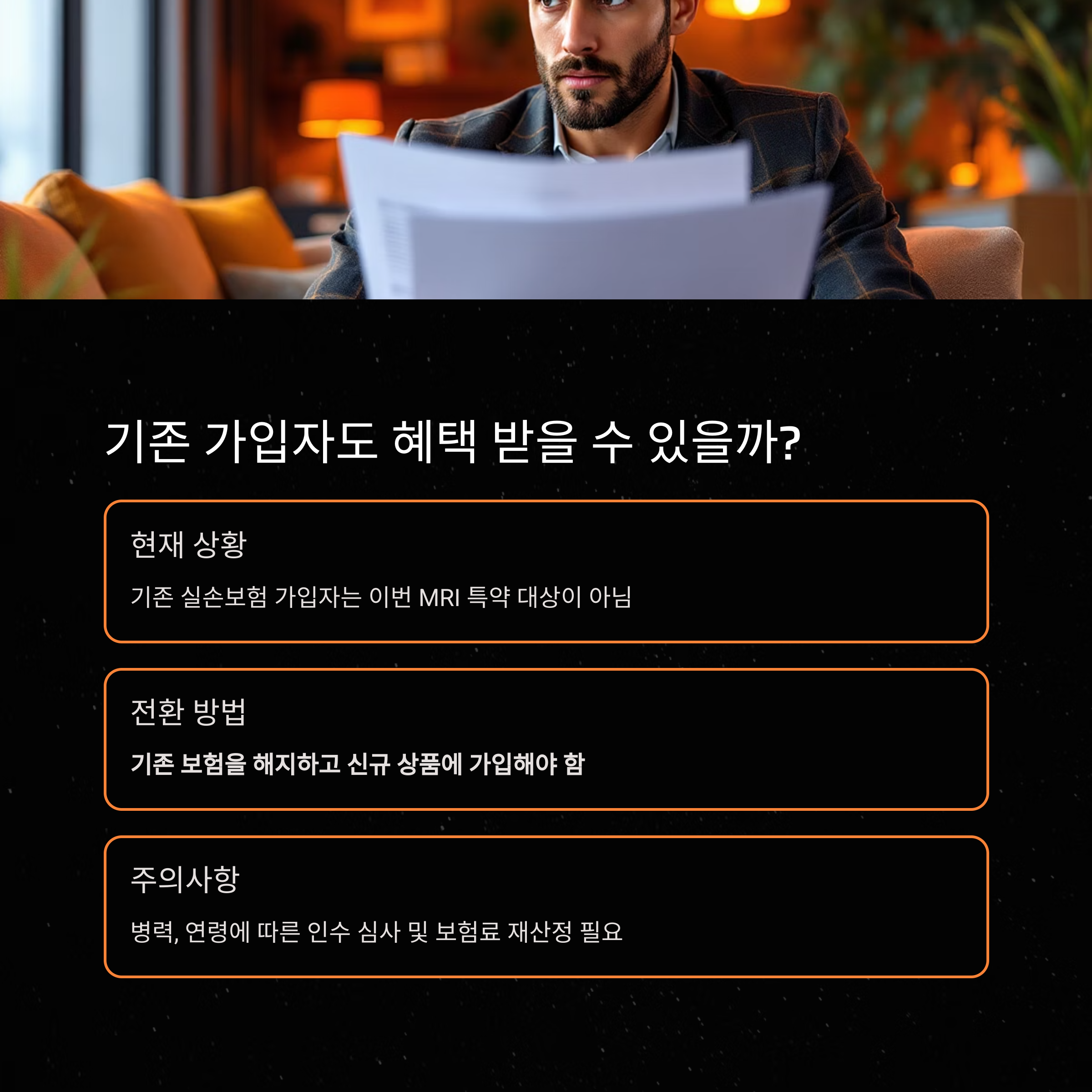 현재로서는 기존 실손보험 가입자는 이번 MRI 특약 대상이 아닙니다.