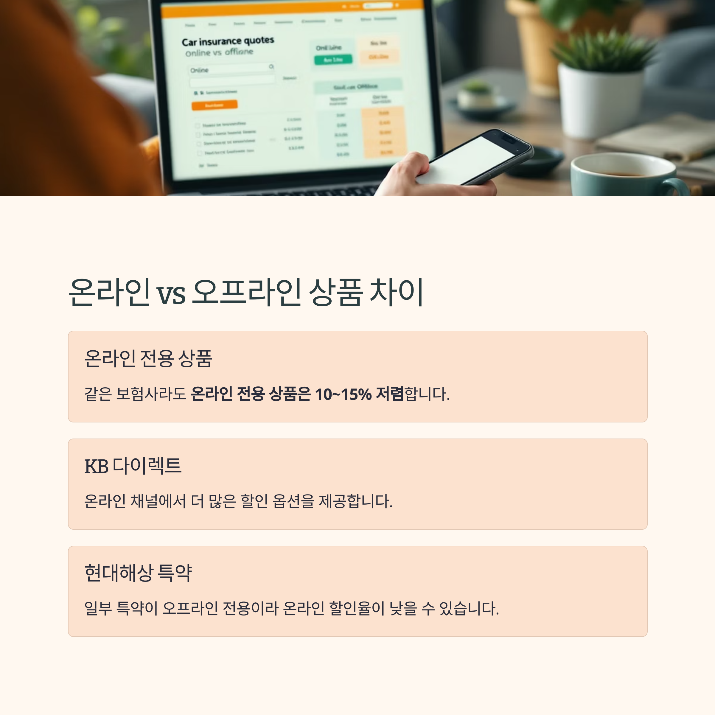같은 보험사라도 온라인 전용 상품은 10~15% 저렴합니다