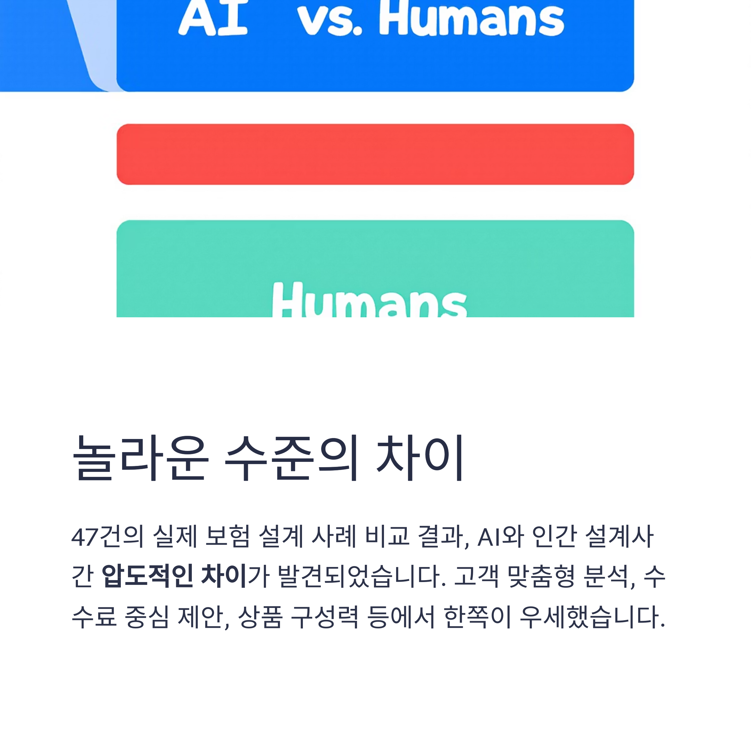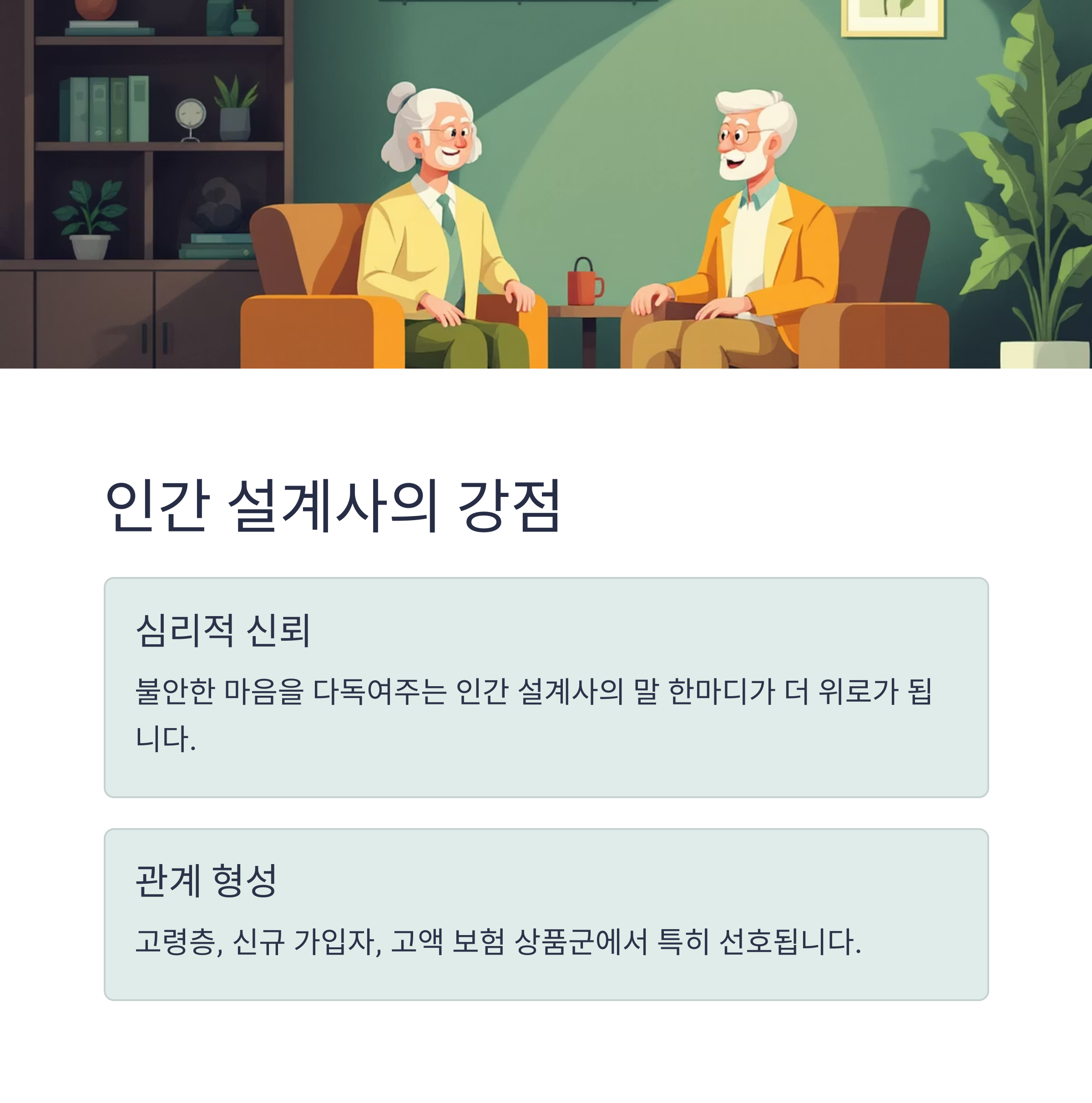 인간 보험설계사는 고객과의 감정적 연결, 장기적 관계 형성에서 강점을 보입니다.