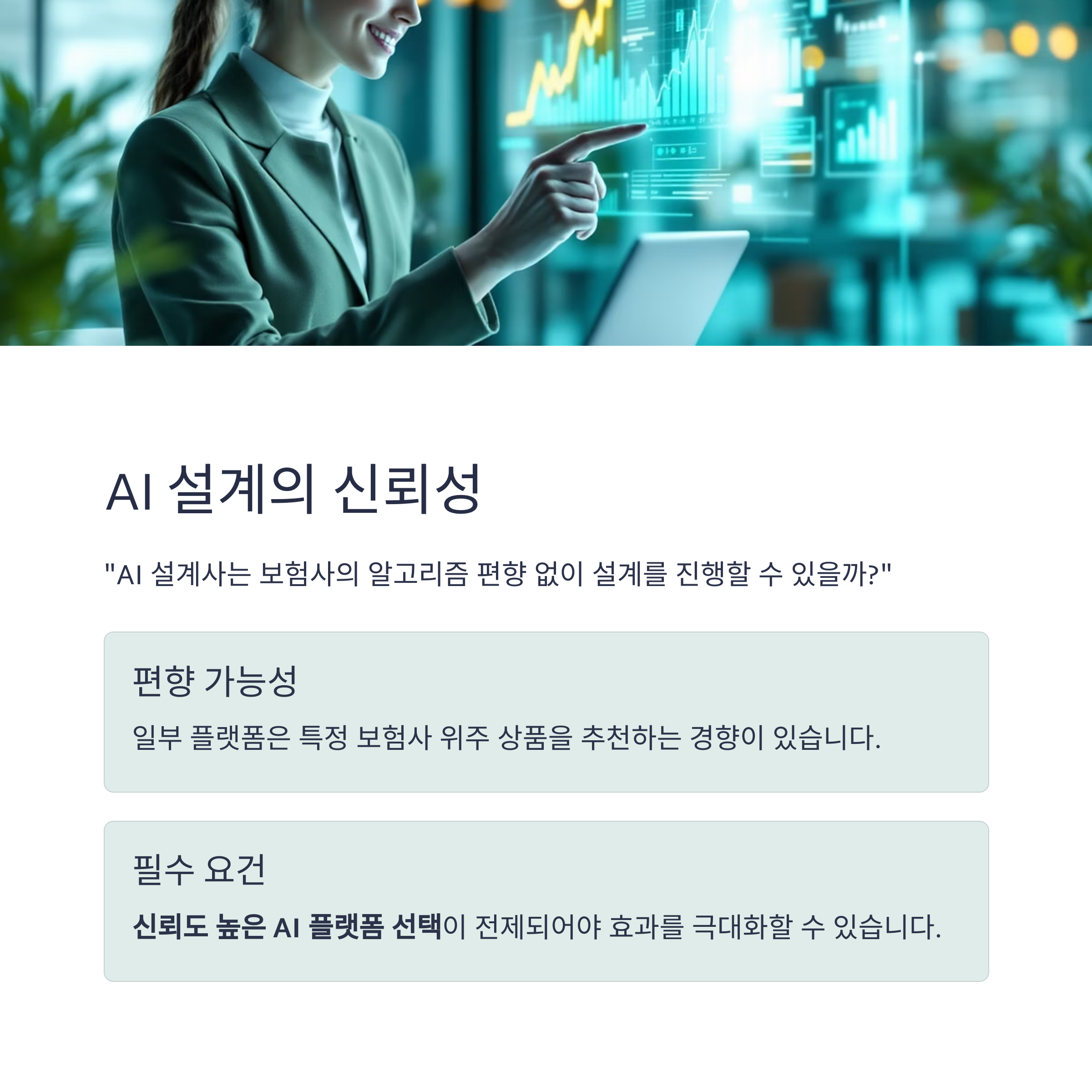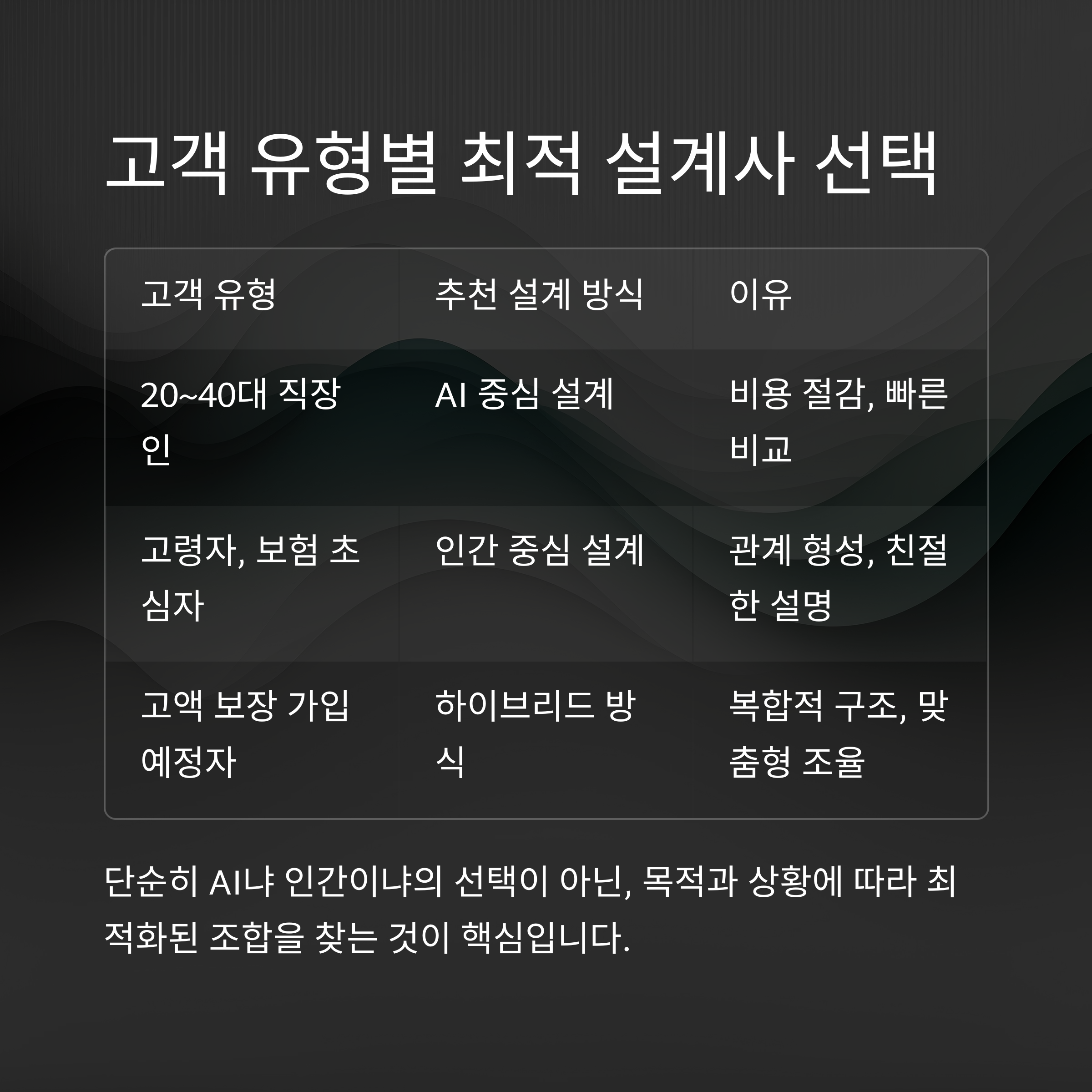반면 인간 설계사는 고객의 삶 전체를 고려한 '방향성'을 제안합니다.