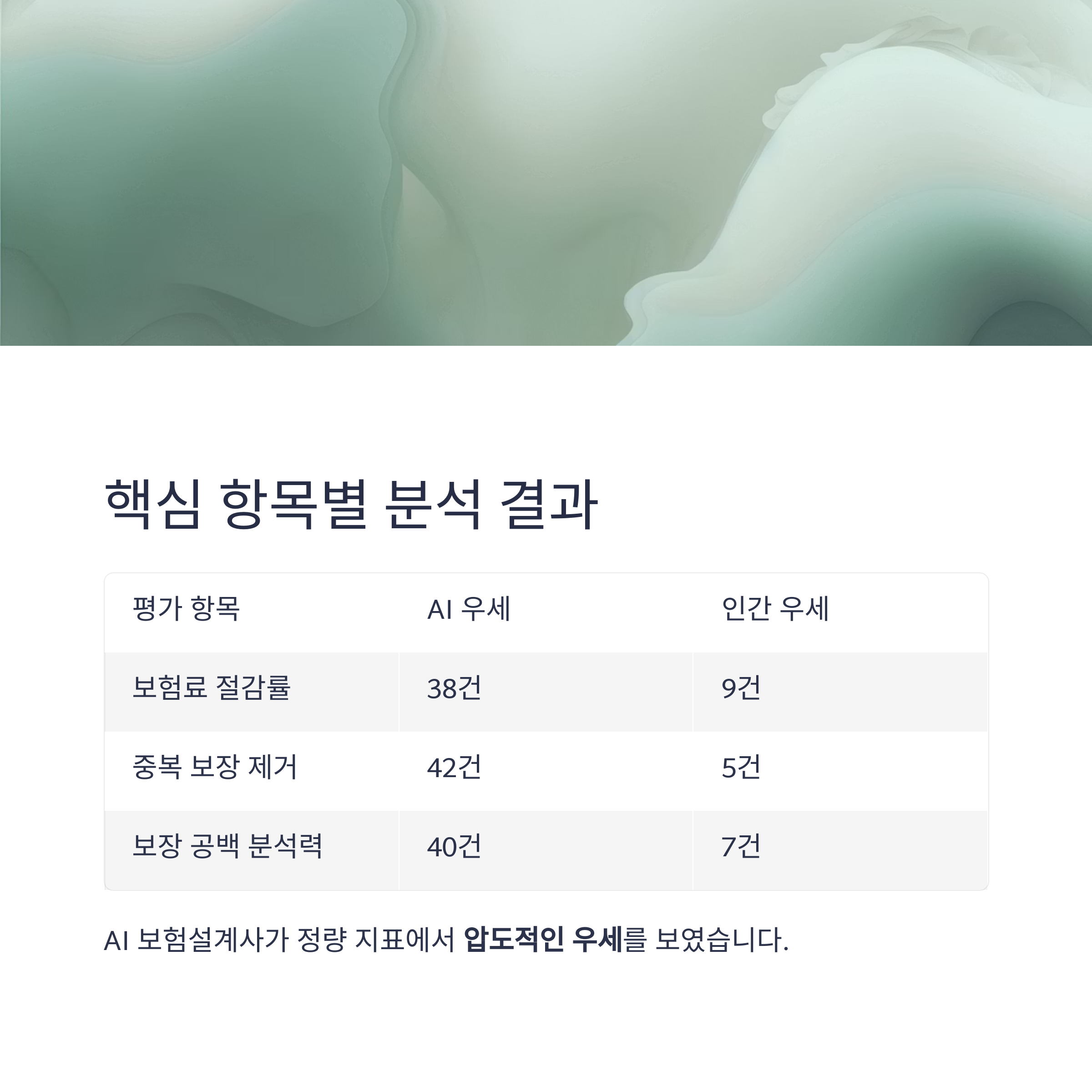 특히 상품 분석, 보장 갱신, 리스크 예측 등에서 인간보다 월등히 빠르고 오류가 적었습니다.